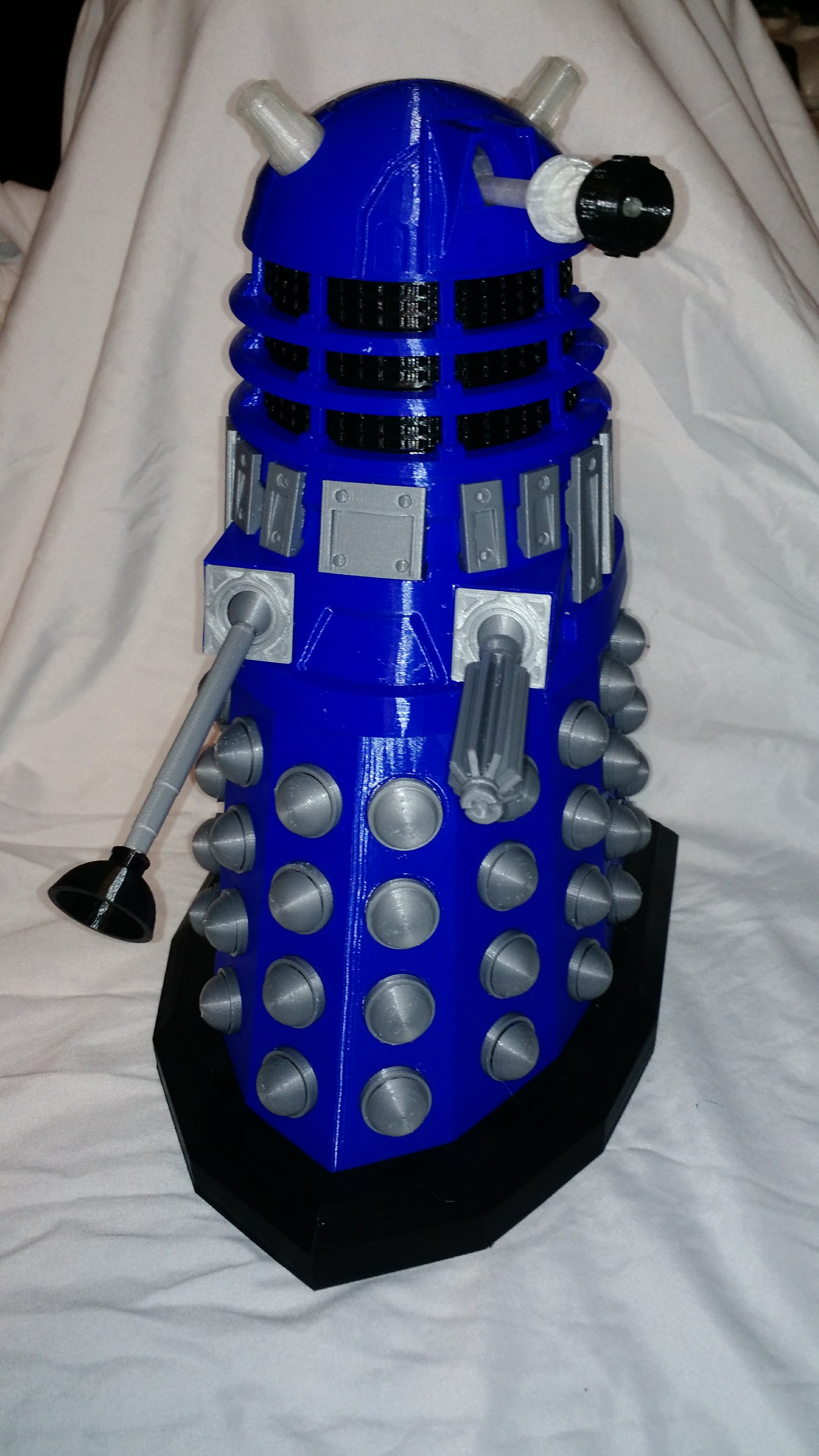 Just have to add a few dabs of glue and I will be done with this bad boy it stands just over 1 foot tall I have about 80 or so hours of print time on this… Scaled up to 1.8x original model, parts range from .1-.3 layer thickness : http://www.thingiverse.com/thing:630351