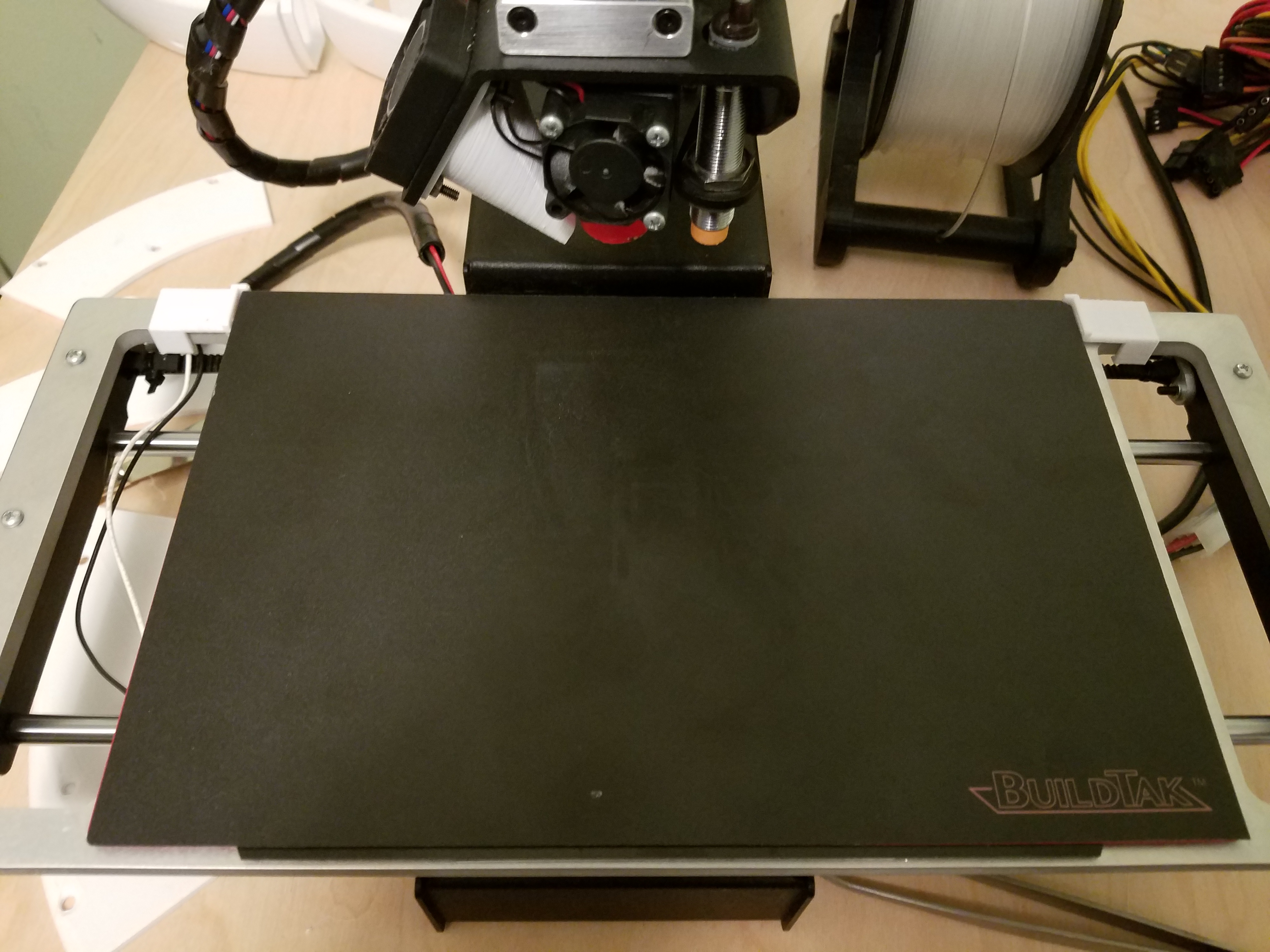 Just wanted to post a quick review of the BuildTak FlexPlate I picked up at Maker Faire since I was one of the first to receive it. I’ve gone through roughly 20 print hours since applying it and it is really helpful. It definitely shortens the time gap in between prints since I don’t have to wait for my plate to fully cool before using a spatula to scrape prints off. Just pop the plate off, flex, and everything nicely comes off the surface. You can purchase it on their website but the lead time is a couple weeks. I really like this system and I would highly recommend it. It’s pretty simple to apply, and just uses 3 parts. The first is the thick magnetic base that gets applied directly to the bed. Then you simply apply the sheet of BuildTak to the red flexible plate and slap that onto the magnetic base. The only thing left you have to do is recalibrate the Z probe. My inductive probe detected the FlexPlate much better than my aluminum build plate actually. I also printed some clips to allow me to position the FlexPlate easier.