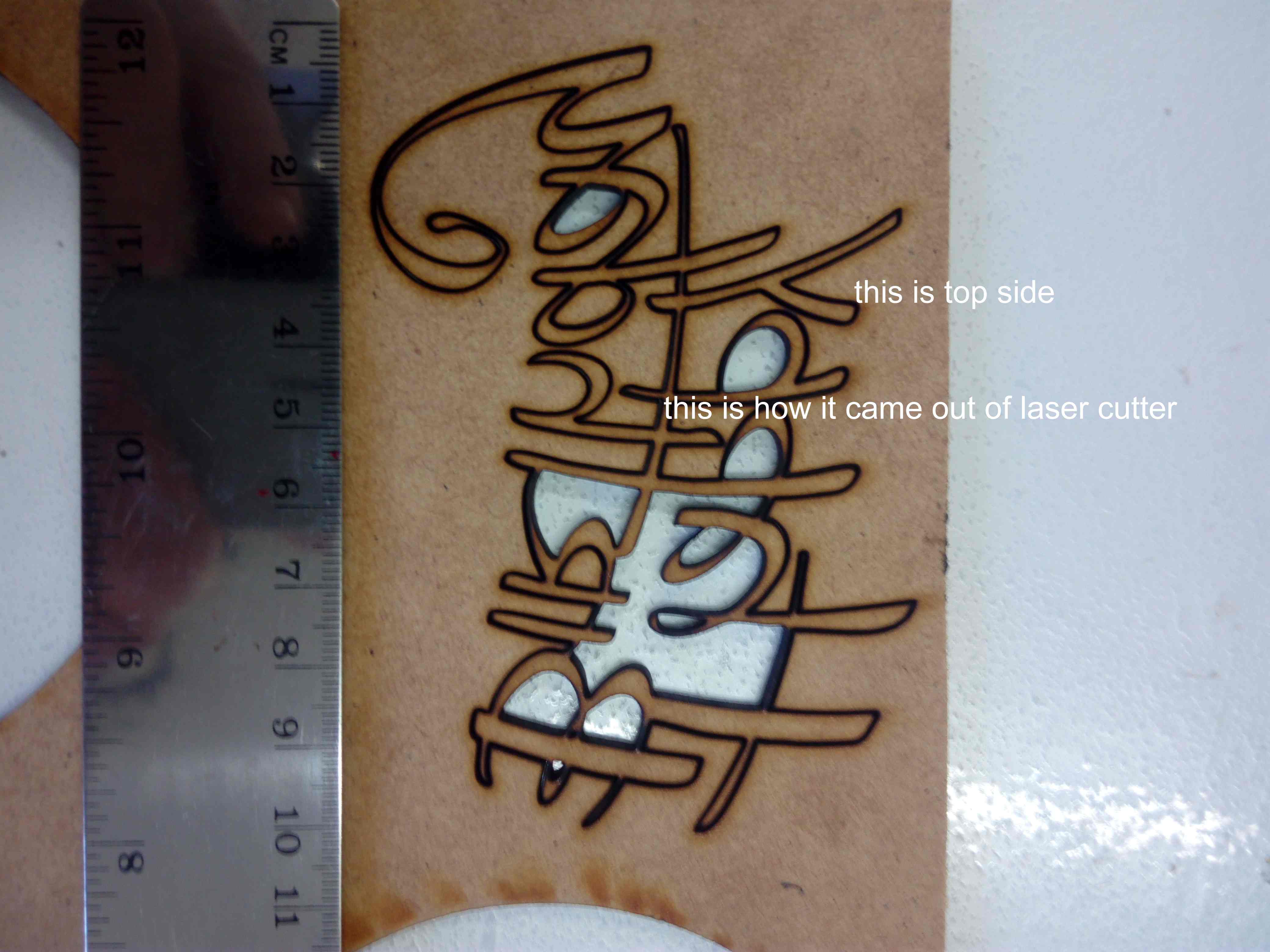 I stiltl loke the way it looks on burnt side,getting to the limit to how fine i can cut the mdf-1-2 mm ,if les distance between cut would leave burn marks on both sides.