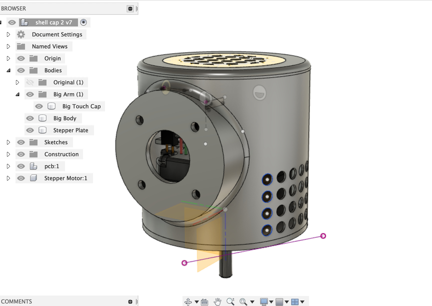 I’ve kept the spacing for the screws to clamp on the original arms. It did occur to me though, rather than printing long cylinders for the arms, maybe as an alterntive option it would be worth using plastic pipe, and designing printing and adapter for each end?
