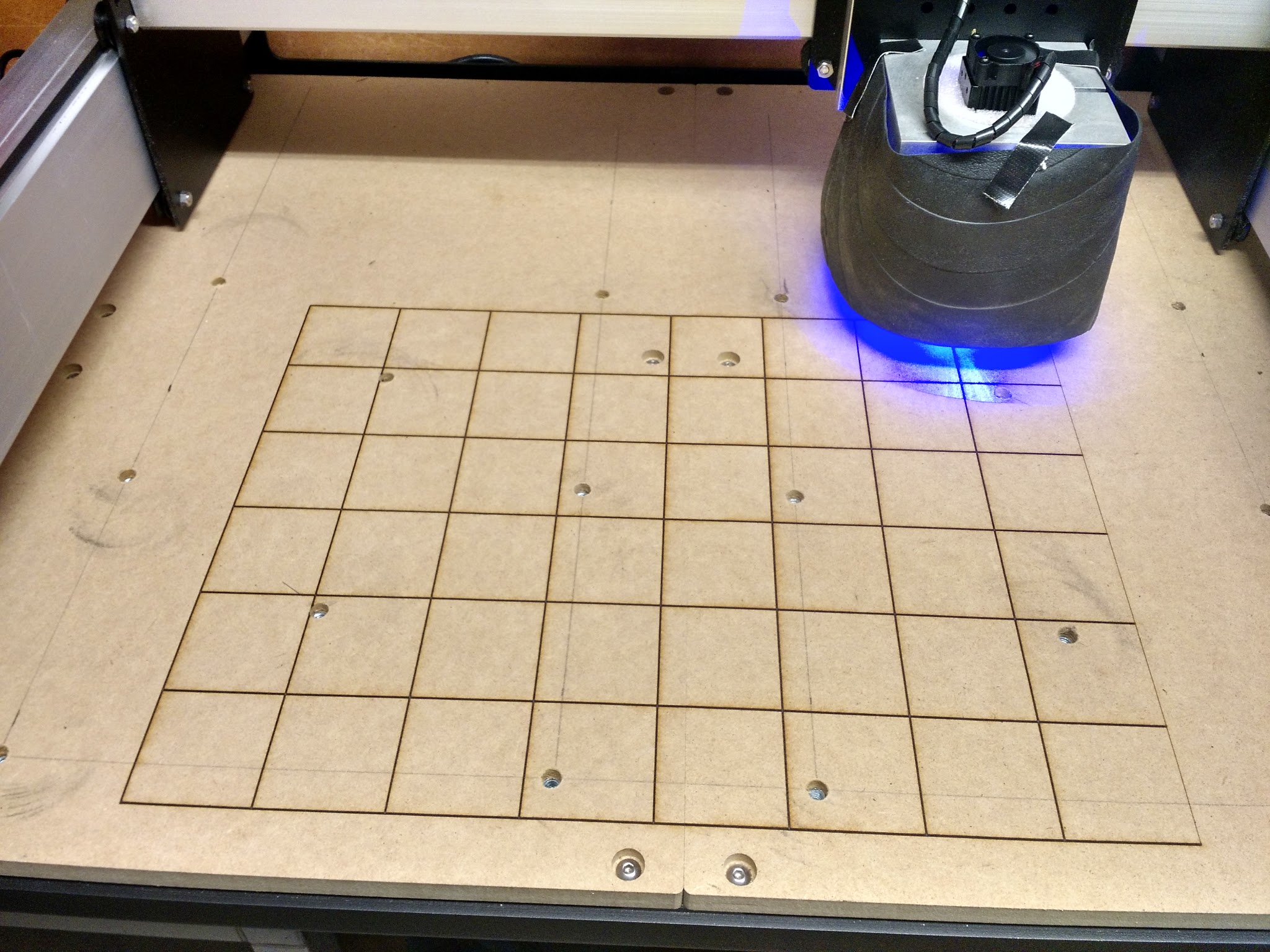 Laser etched guide lines on my ShapeOko3 waste board with my 2W Laser. Mod details documents here; http://www.shapeoko.com/forum/viewtopic.php?f=4&t=6680
