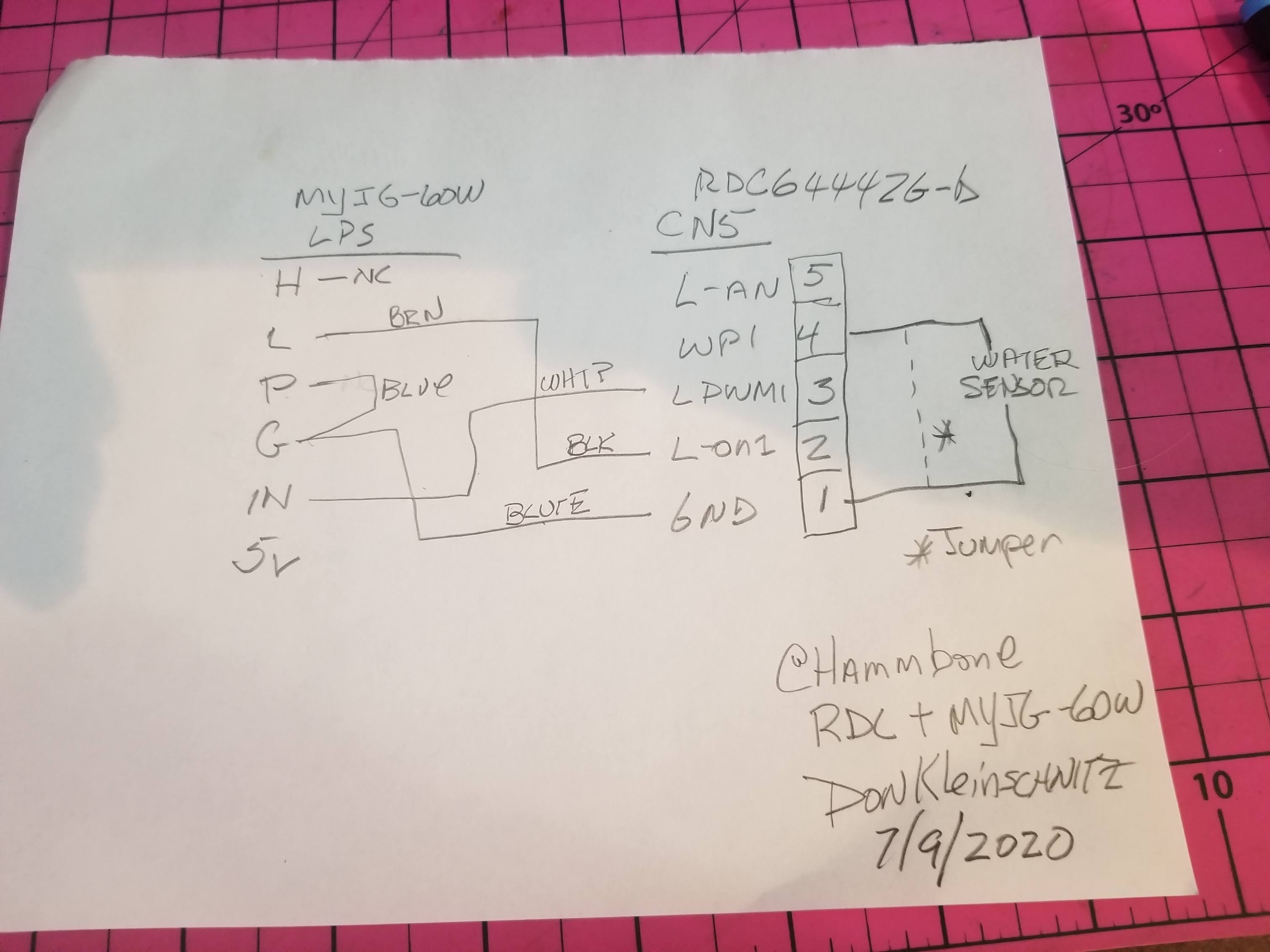 I am still thinking the water sensor jumper change as being related to this problem, somehow the controller thinks it does not have water flow and therefore never asserts “L”.
