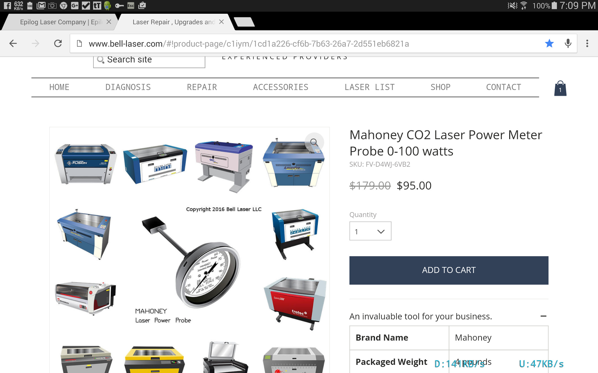 Laser Power Meter up to 100w on sale for $95http://www.bell-laser.com/#!product-page/c1iym/1cd1a226-cf6b-7b63-26a7-2d551eb6821a
