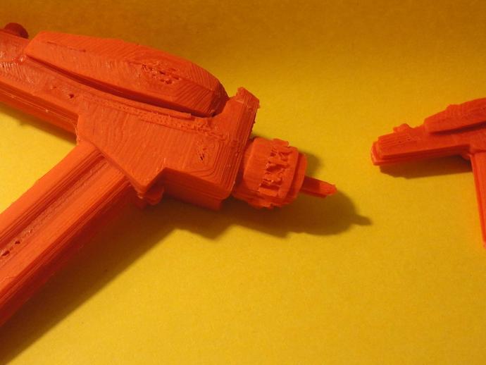 Last week, I asked why there were no phasers on Thingiverse. I noticed one on their today but it didn’t look like it had a nice surface to print, so… I split it. haven’t printed it yet, but will sometime this weekend: