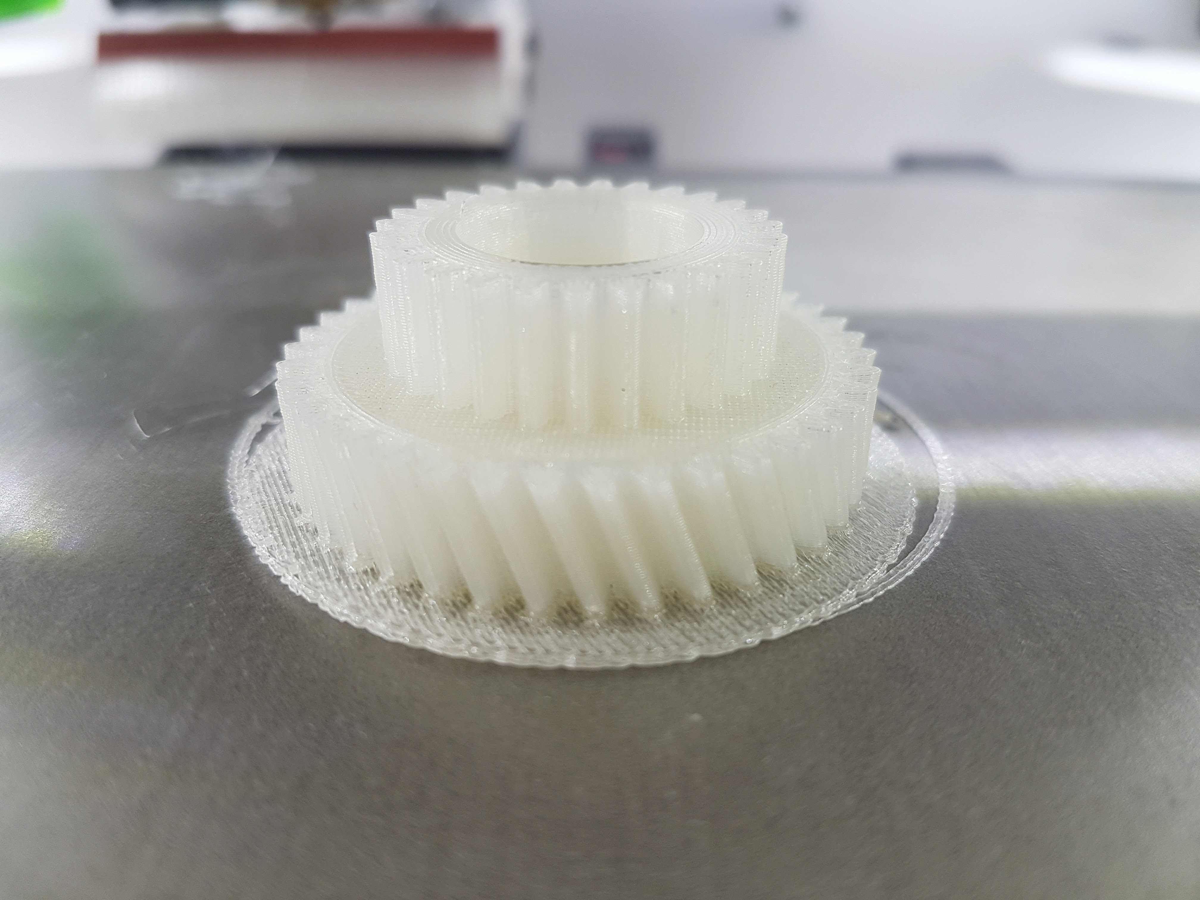 I was very surprised at the hardness of this filament and cut my finger with the sharp teeth of one gear.