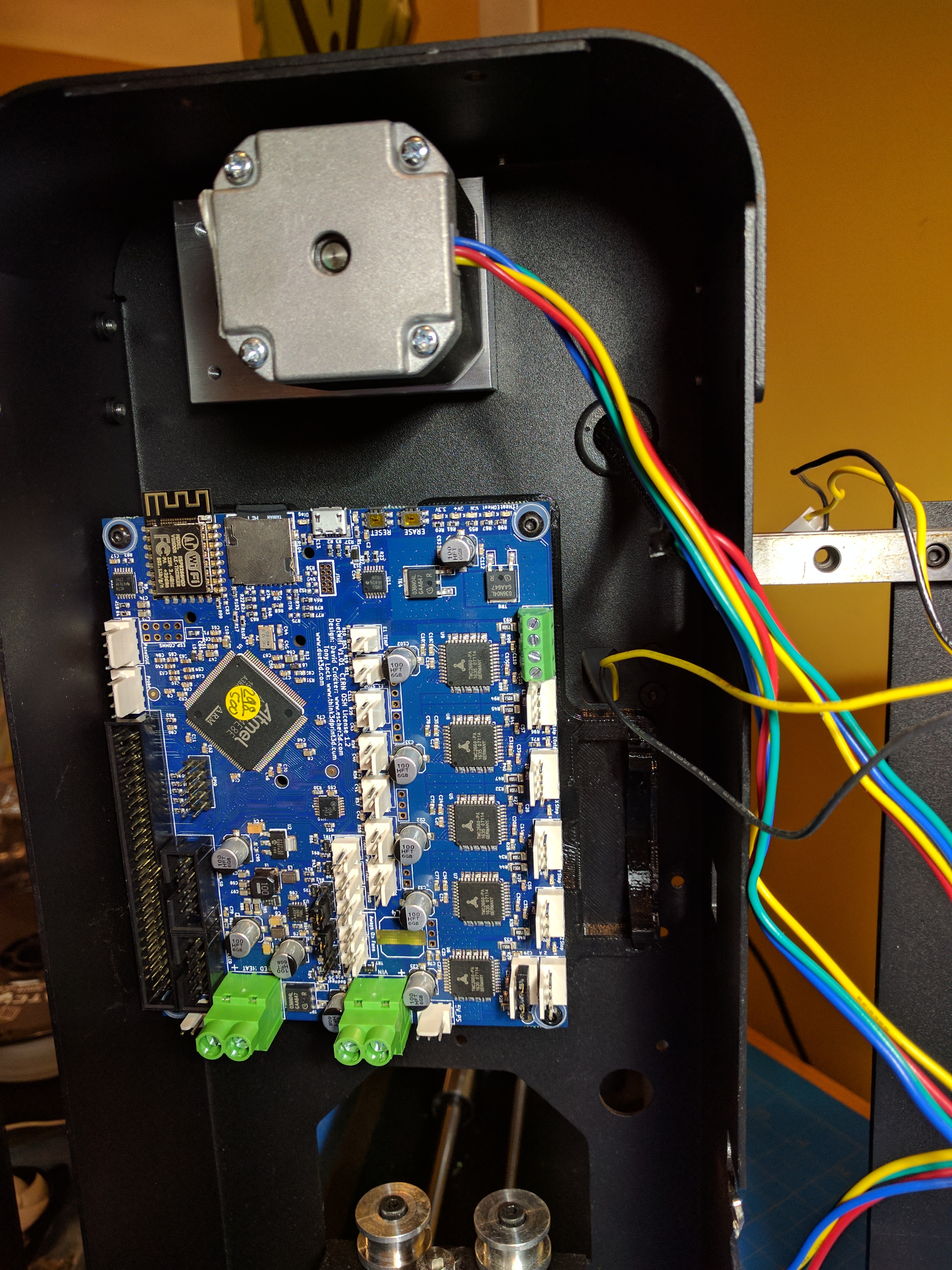 Luckily there’s plenty of room for a large board like the Duet Wifi in the Printrbot Metal Plus. I’m hoping the reception with the base removed is acceptable.