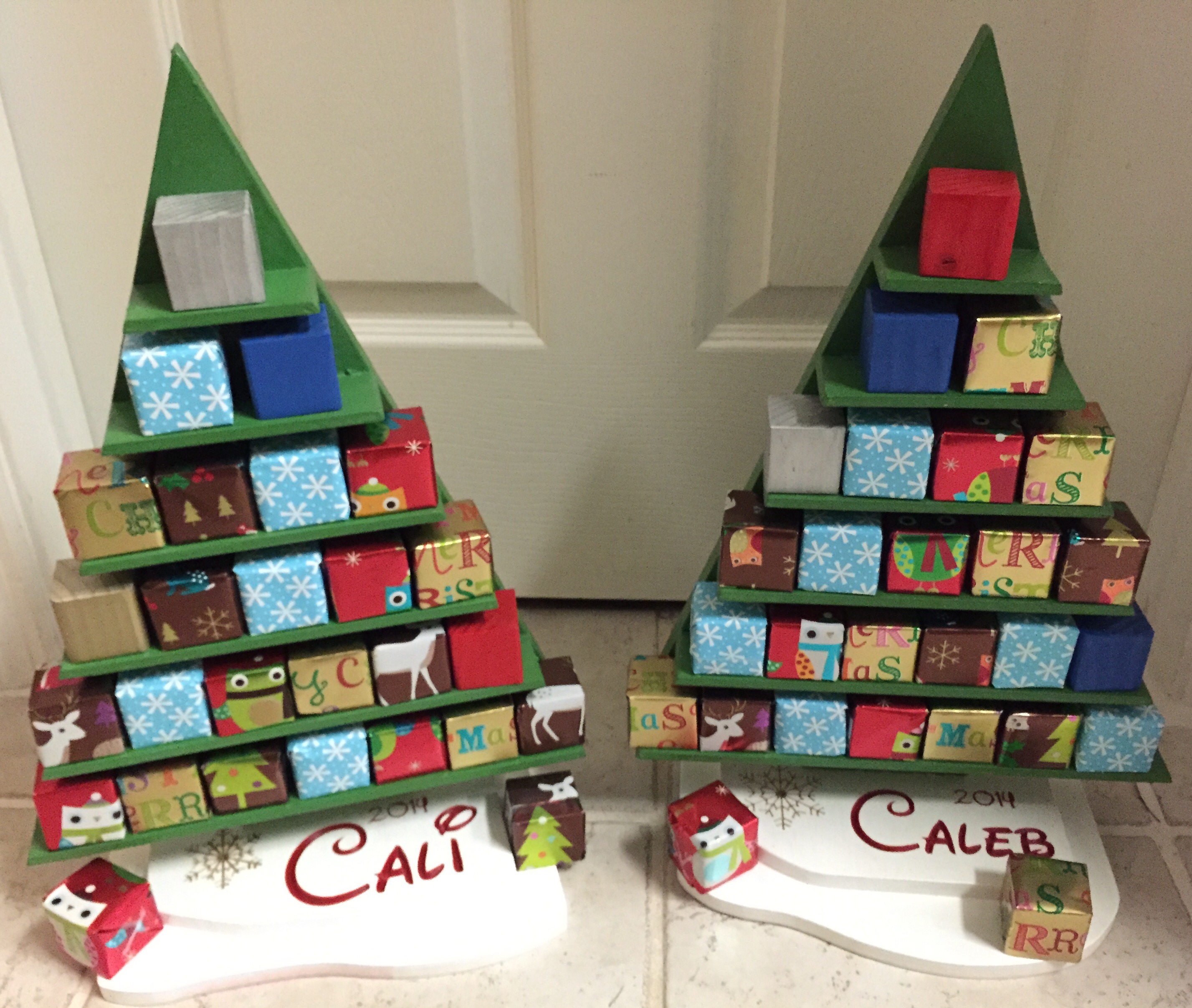 Made a couple of advent calendars using @Steve_Ramsey design. Used the shapeoko to carve the names in the base. Kids are enjoying all the chocolates anyway.