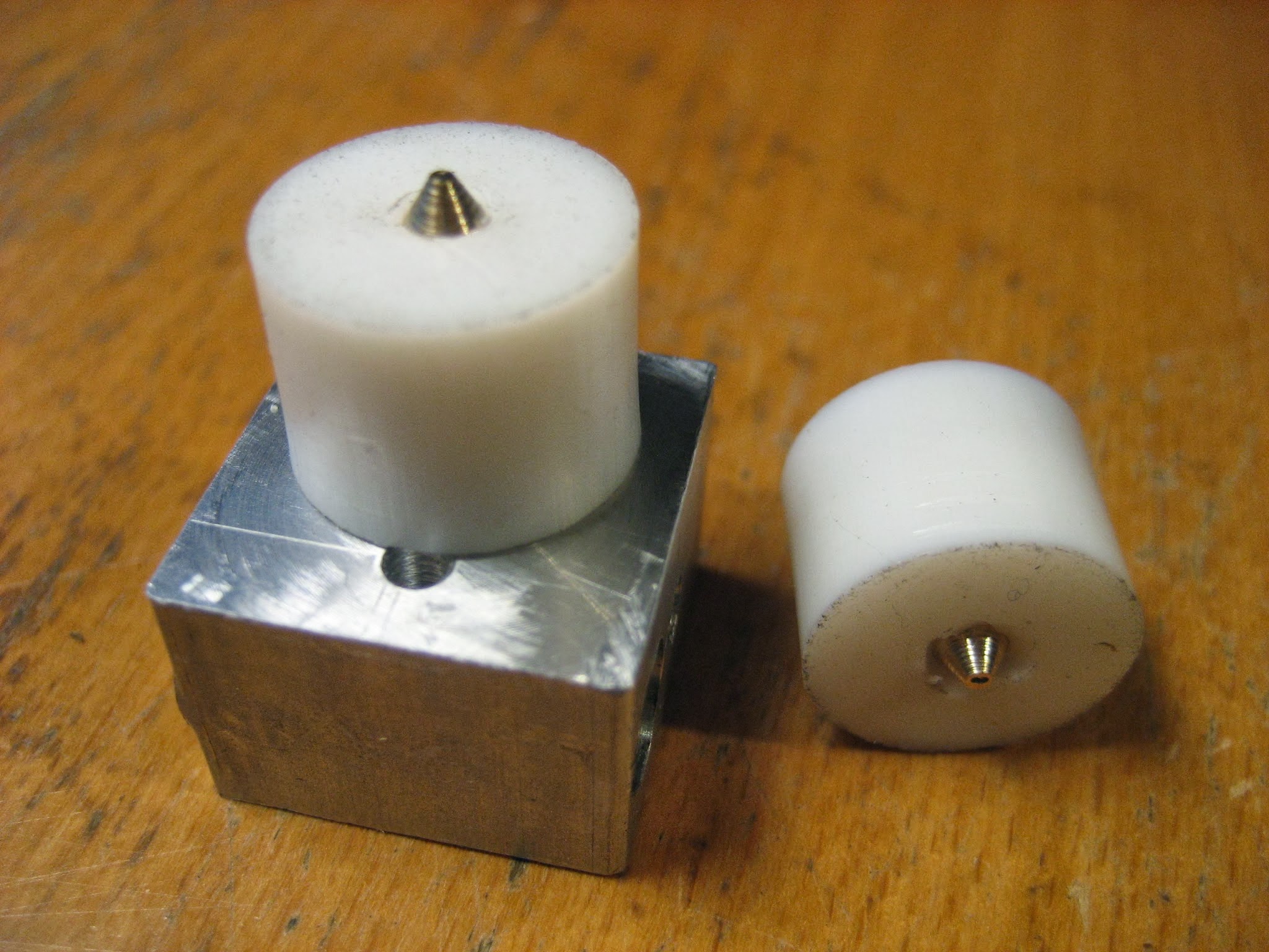 Custom made nozzle. This ptfe hat is added to isolate hot surface of nozzle from print. Moreover it doesn’t let lose temperature of melted filament.