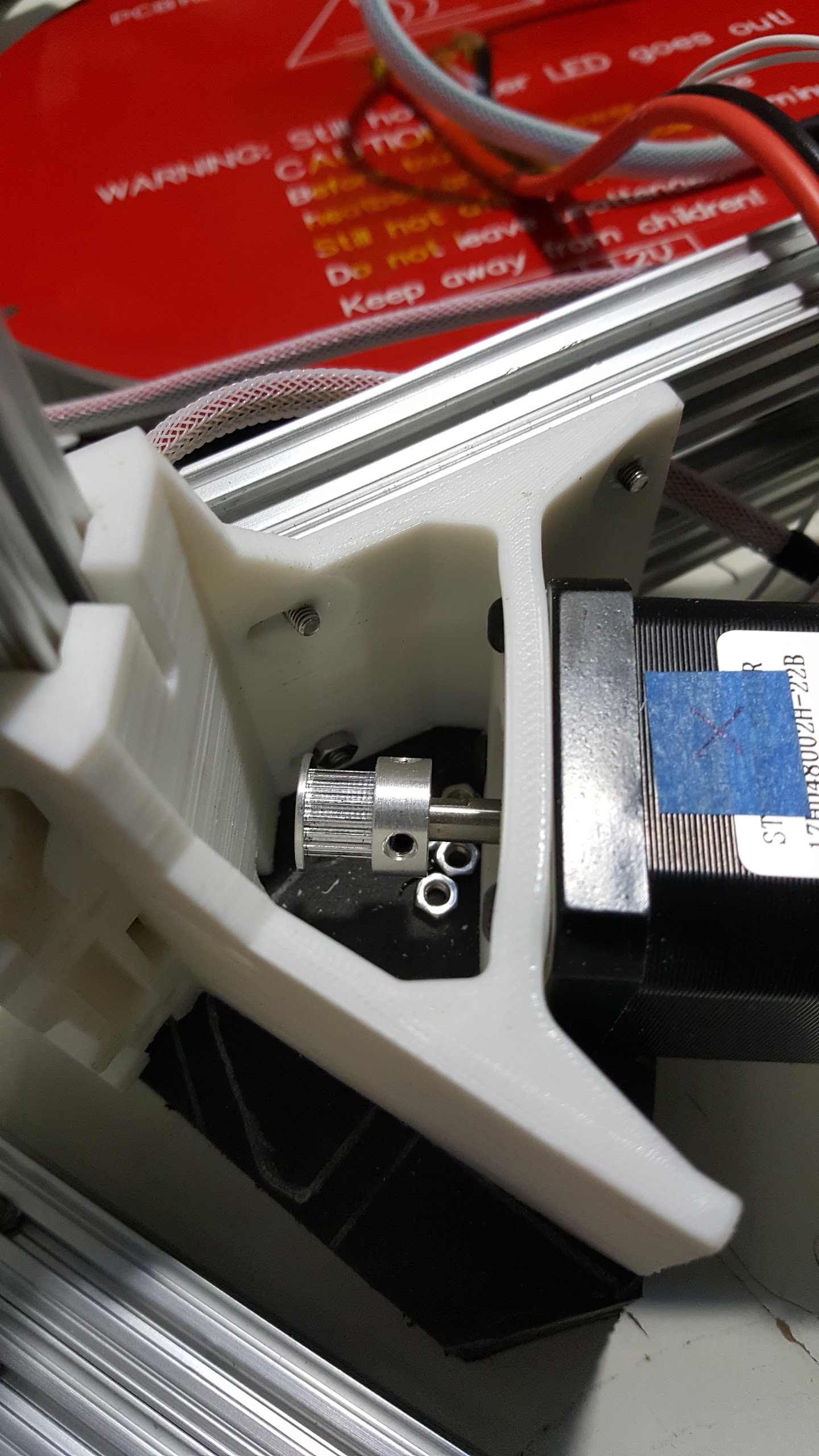 @Duncan_Gunn we think alike. designed braces from the side extrusions to the motors a few days ago even before this melted corner incident, working out the tensioning, set screws or threaded rod to motor, possible plate of copper as interface/heatsink.