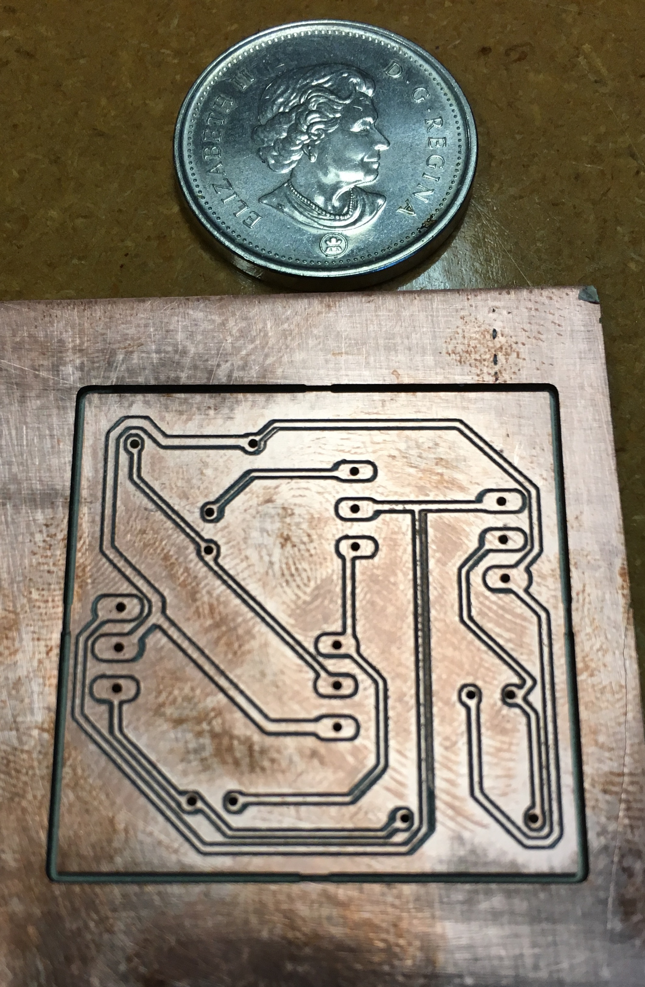 I am impressed at the resolution of the traces. Next time I need to make the pads large enough to accept larger drill holes and some extra room for solder. This at least should help those thinking of using a similar setup to mine.