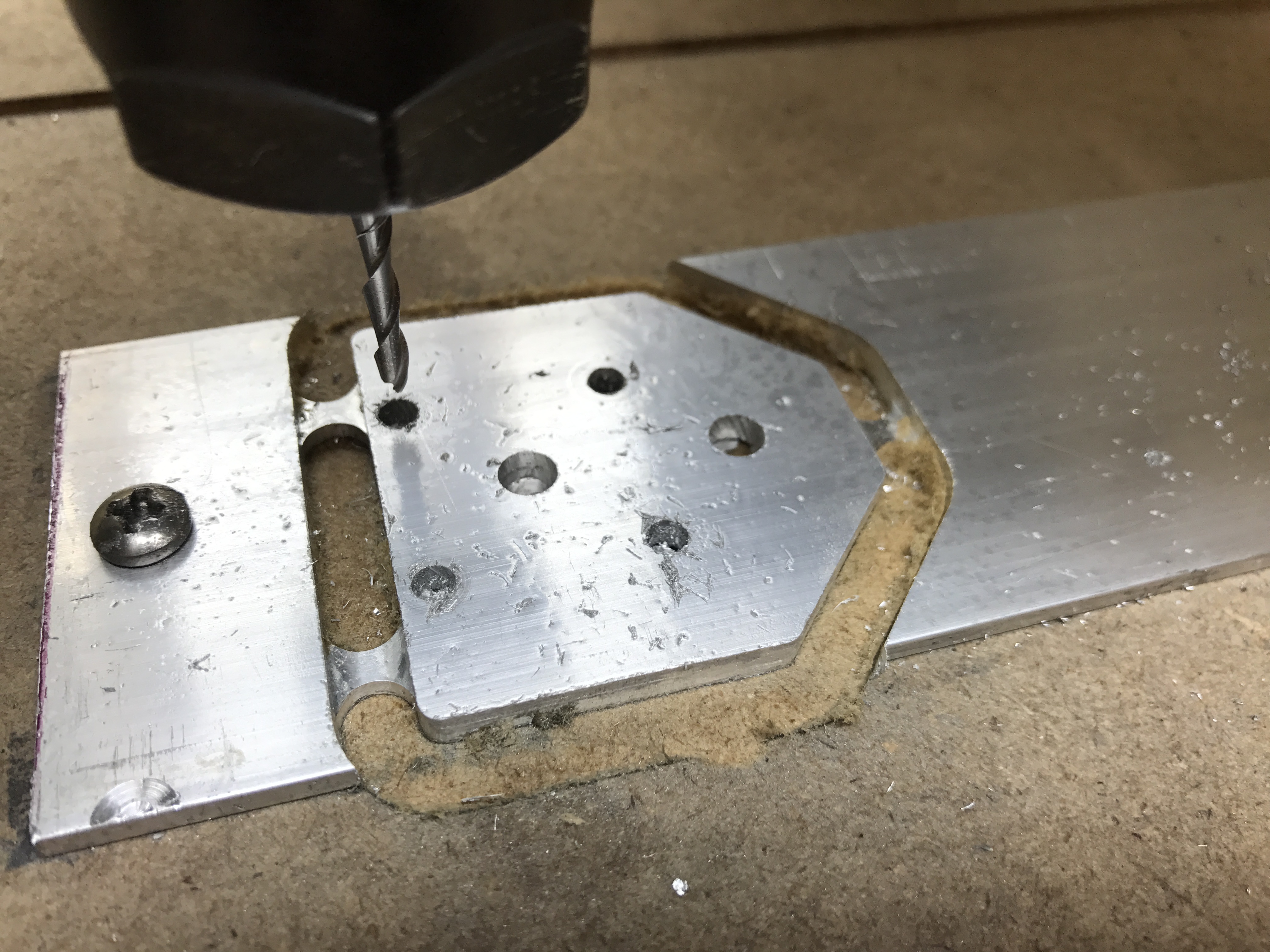 Milling aluminum parts for a scratch build 3D printer I am designing. Learning lots in the process. Chilipeppr and the tinyg have been pretty damn solid, only a couple of tinyg issues thus far.