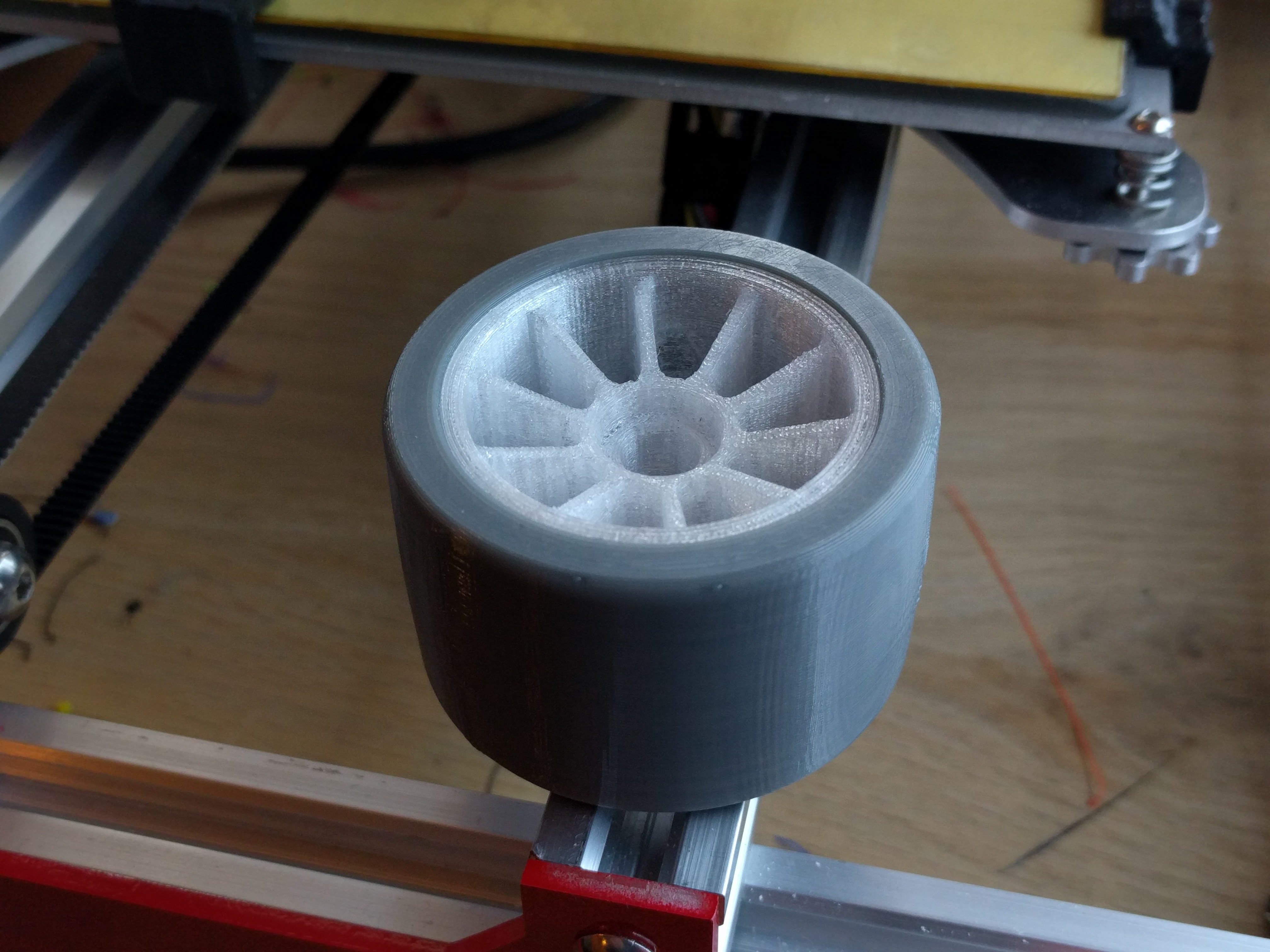 Going to build my two boys some OpenRC cars (ninjaflex and sainsmart flex tires printed on Spartan at 50mm/s, rims on Tria 70mm/s)