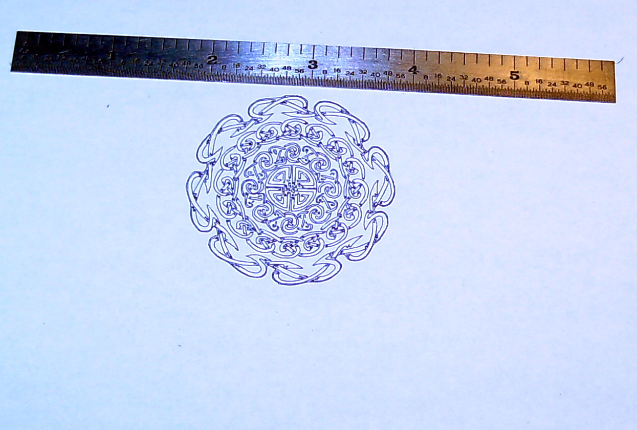 I plot to get a general idea of the size of things. The computer tells me how big stuff is going to come out, but that still isn’t quite like seeing it. Somehow the subjective experience of seeing plots is fundamentally different than viewing jobs on screens for me. I don’t quite know why that is either. But it is. I saw this stuff when I edited the pattern, I saw it when I converted it to a vector graphic. I saw it when I converted it to G Code, and I saw it when I simulate ran it too. I even saw it in Axis right before I hit the run button. But none of that was like seeing it come off my machine. I certainly had a good idea what it was going to be like. There is still a palpable cognitive gulf between all of those screen views and the hard copy for me though.