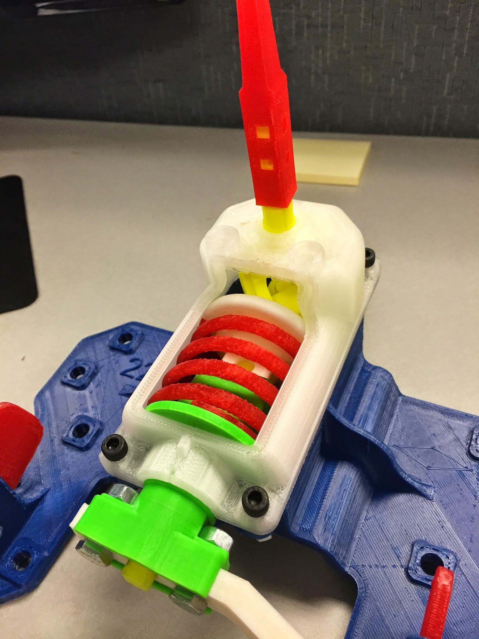 Most complex 3D-printed assembly I’ve completed yet. Probably my favorite too. And yes, the printed spring actually works.
