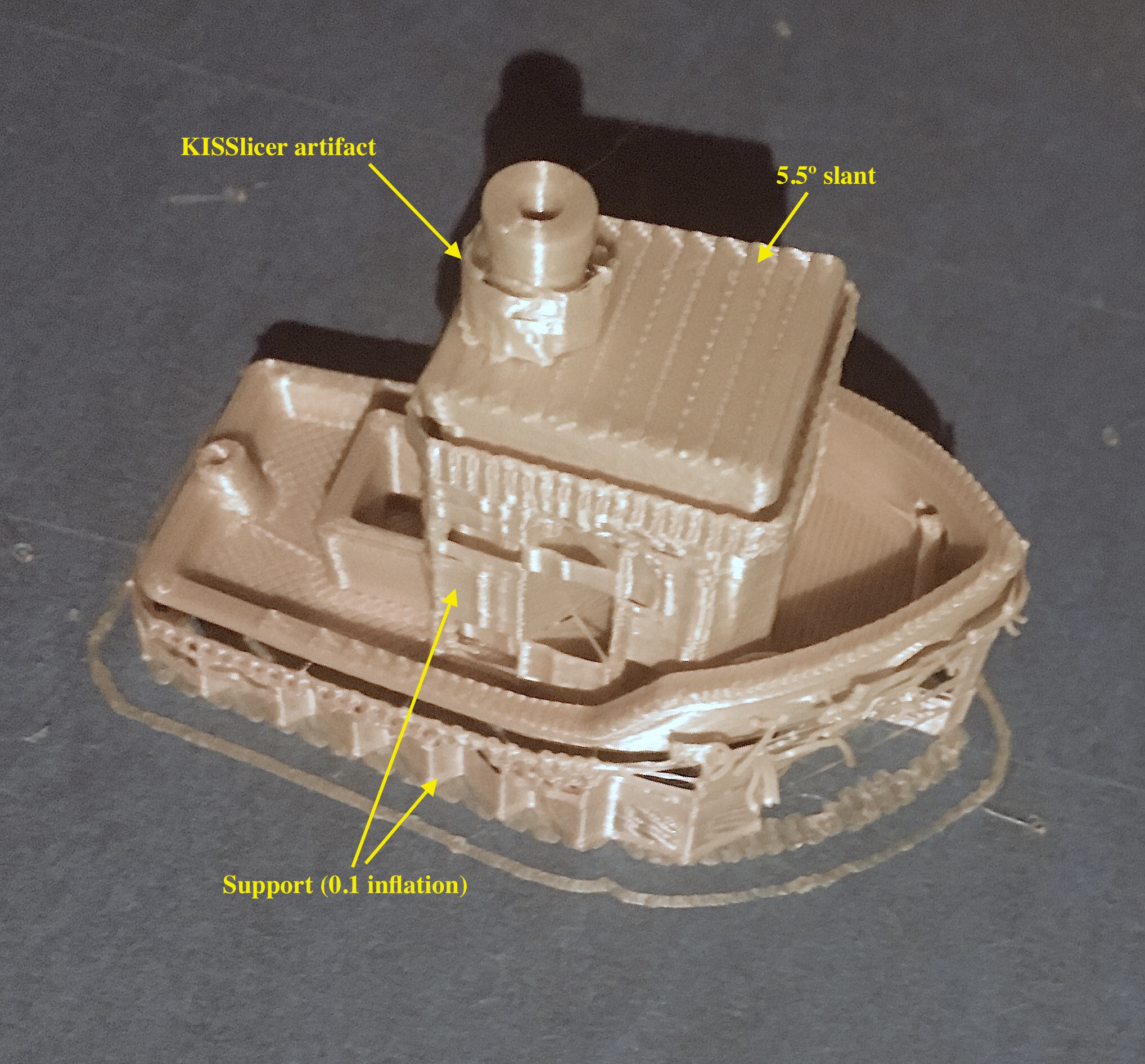 In addition, angle-only threshold causes a circular support to be produced 1.4mm away from the chimney’s stem, presumably because its 0.3mm rim protrudes like a 90º overhang. I wonder how software could determine that such a support would never be helpful.
