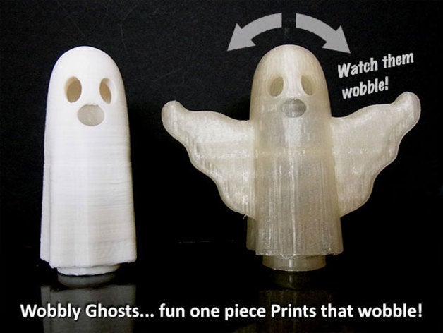 What I learned from printing the above is that the spring does gradually give way if kept compressed – so the ghost’s wobbleability reduces over time and you eventually have to give it a stretch to get things working again (at least for ColorFabb GLOWFILL).