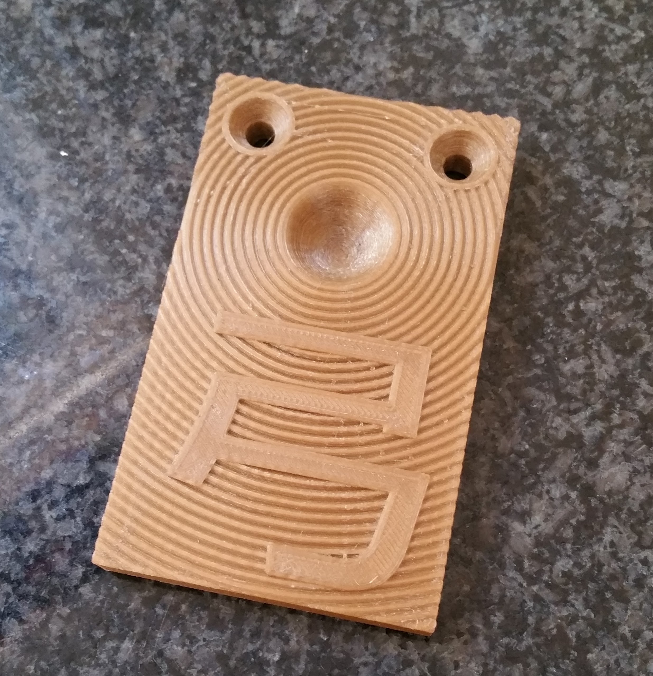 I didn’t notice the 3 mm filament setting in a new install of cura. Since I am running 1.75, it left gaps in the face of the part. I had enough top/bottom thickness that holes didn’t go all the way through. It made for a really cool 3D effect on the front. It would have been a useable part but it warped bad in a corner where there wasn’t much material. It’s something I want to investigate in the future with a part designed with that effect on the model.