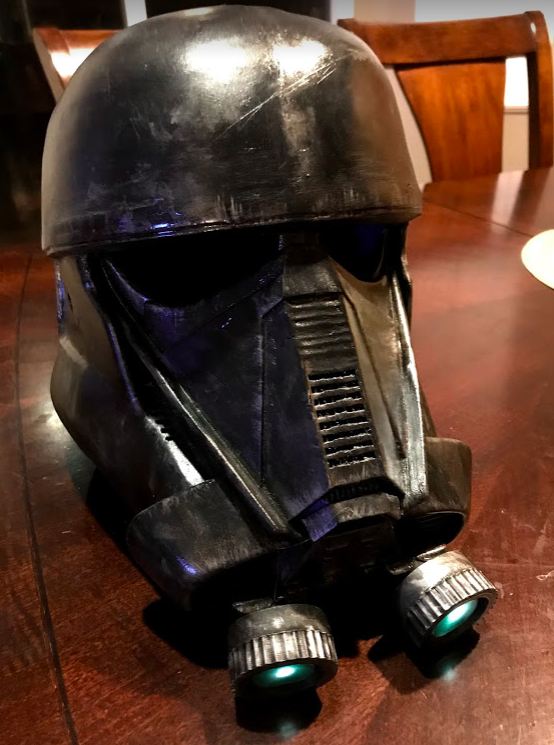 My 3D printed death trooper helmet I made for Halloween this year that I took from thingiverse (https://www.thingiverse.com/thing:1904115). Printed on the daVinci Mini and the Prusa i3 mk2s in various PLAs. Took a lot of gap filling and sanding (and probably could benefit from even more sanding). Painted, weathered, and scratched to make it look like it went through battle. Learned a lot from this project that I will hopefully be able to use moving forward!