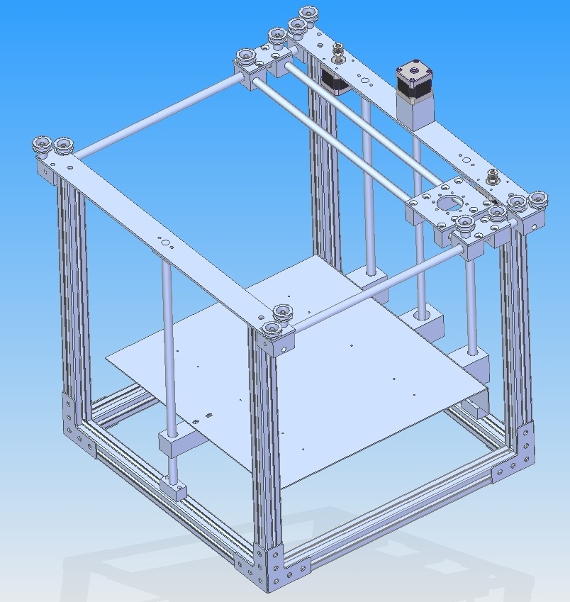 Okay, that sounds better, but I only see one motor for Z in your design? Where are you going to place the second motor? If you’re planning the motors parallel to the two guide rails on the same side of the printer, there stil is a problem. If you place the second motor on the opposite side, that could work. But in that case the belts would be in the way? You could place the motors at the bottom of the printer, as I did. But then there is also the problem keeping the bed level? Which could be solved with 3 (smaller) motors?