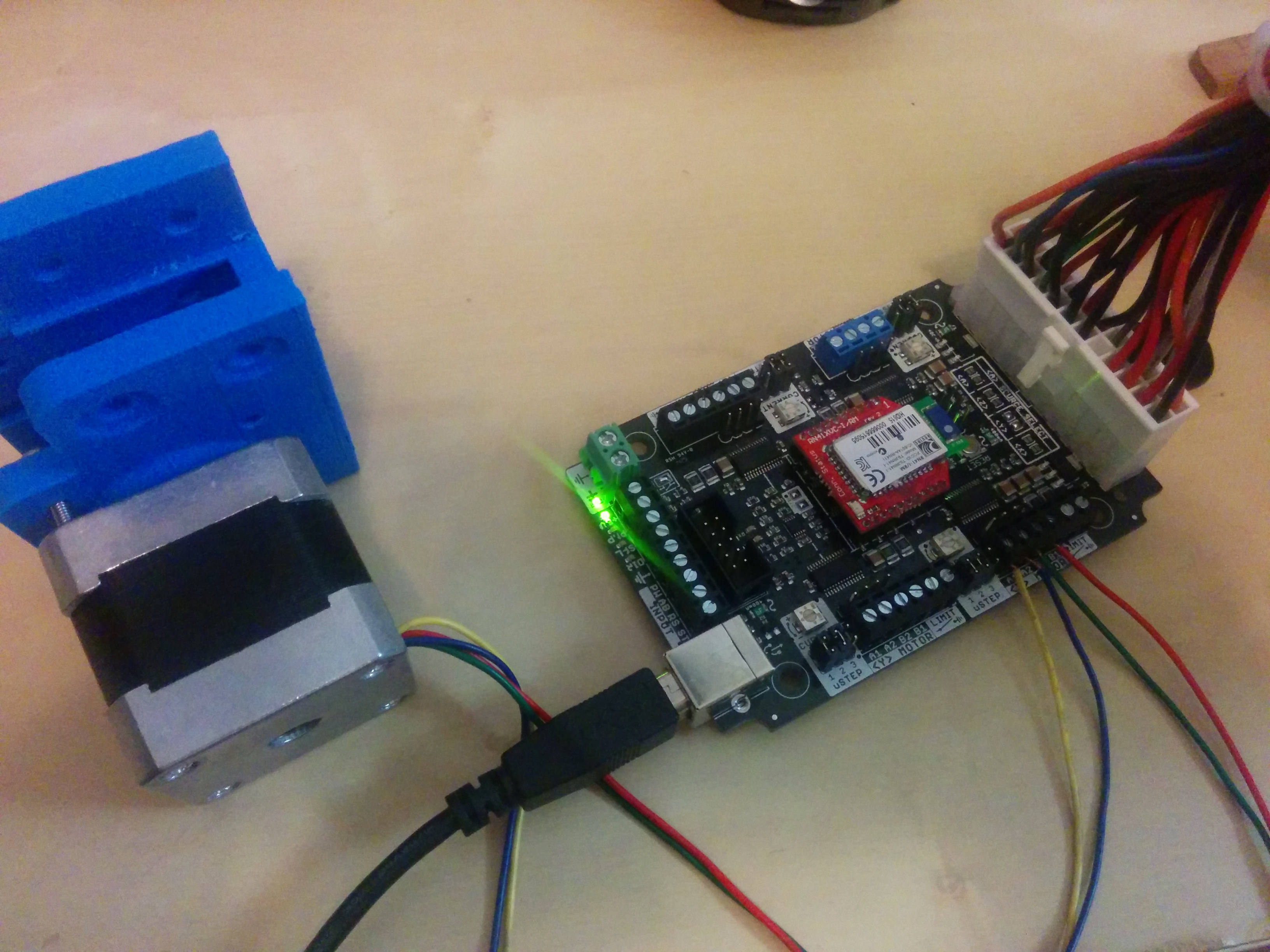 Getting it up and running with Universal Gcode Sender was quick and easy. Here you can see the vslot connector with a nema 17 hooked to the board for testing.