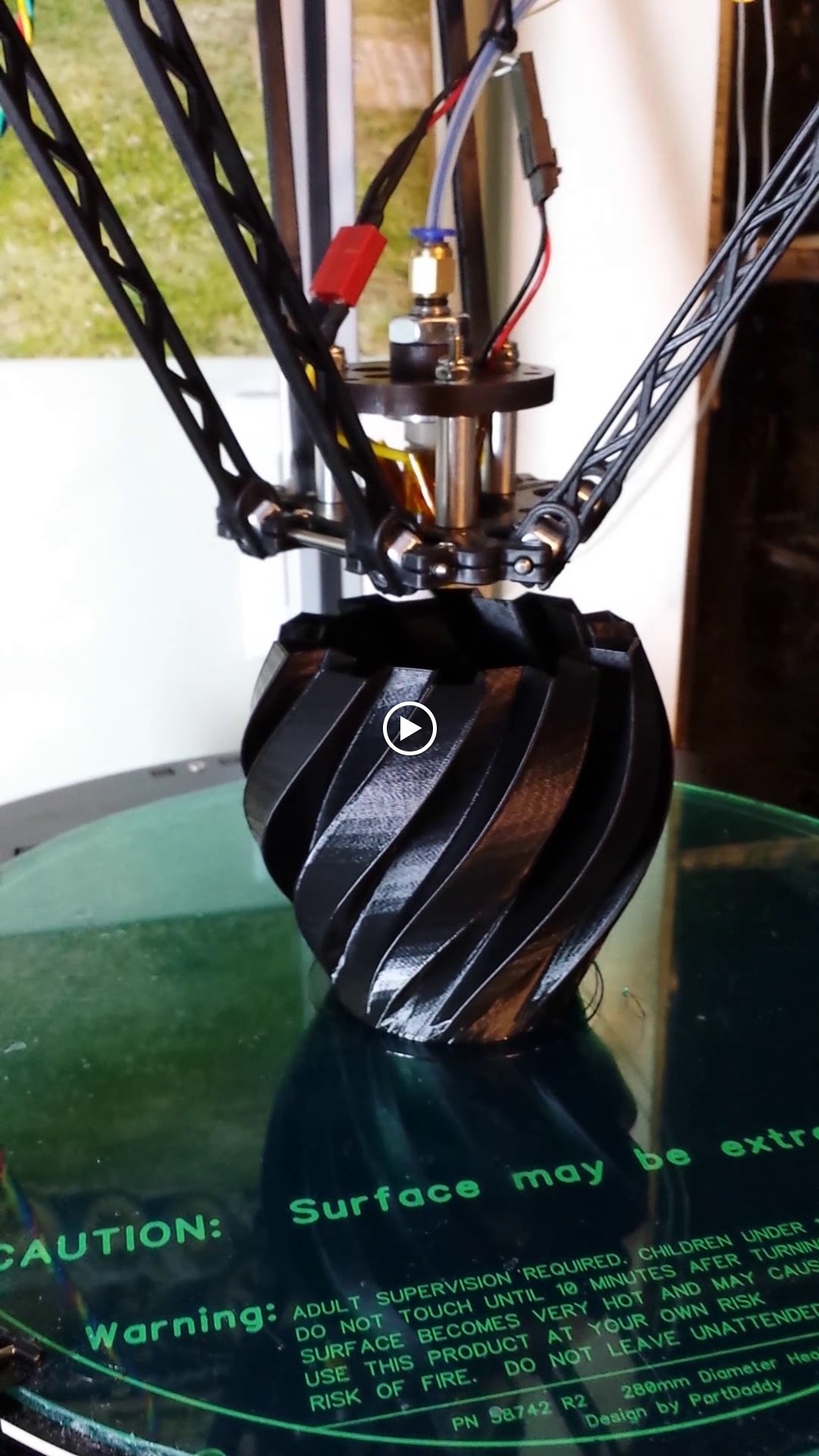 My first print on my Rostock Max. Still need to tidy up cables to hot end.
