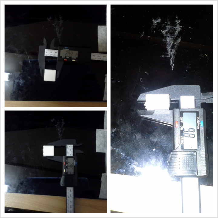 My first print on the Graber i3, with an Aluhotend. Repetier Firmware, Slic3r, Repetier Host. Calibration cube, meant to be 20x20x10mm. Pretty happy with this. Got 20.5, 20.9, 9.8mm, printing at 0.1. The Z is definitely bed calibration, wasnt perfect.