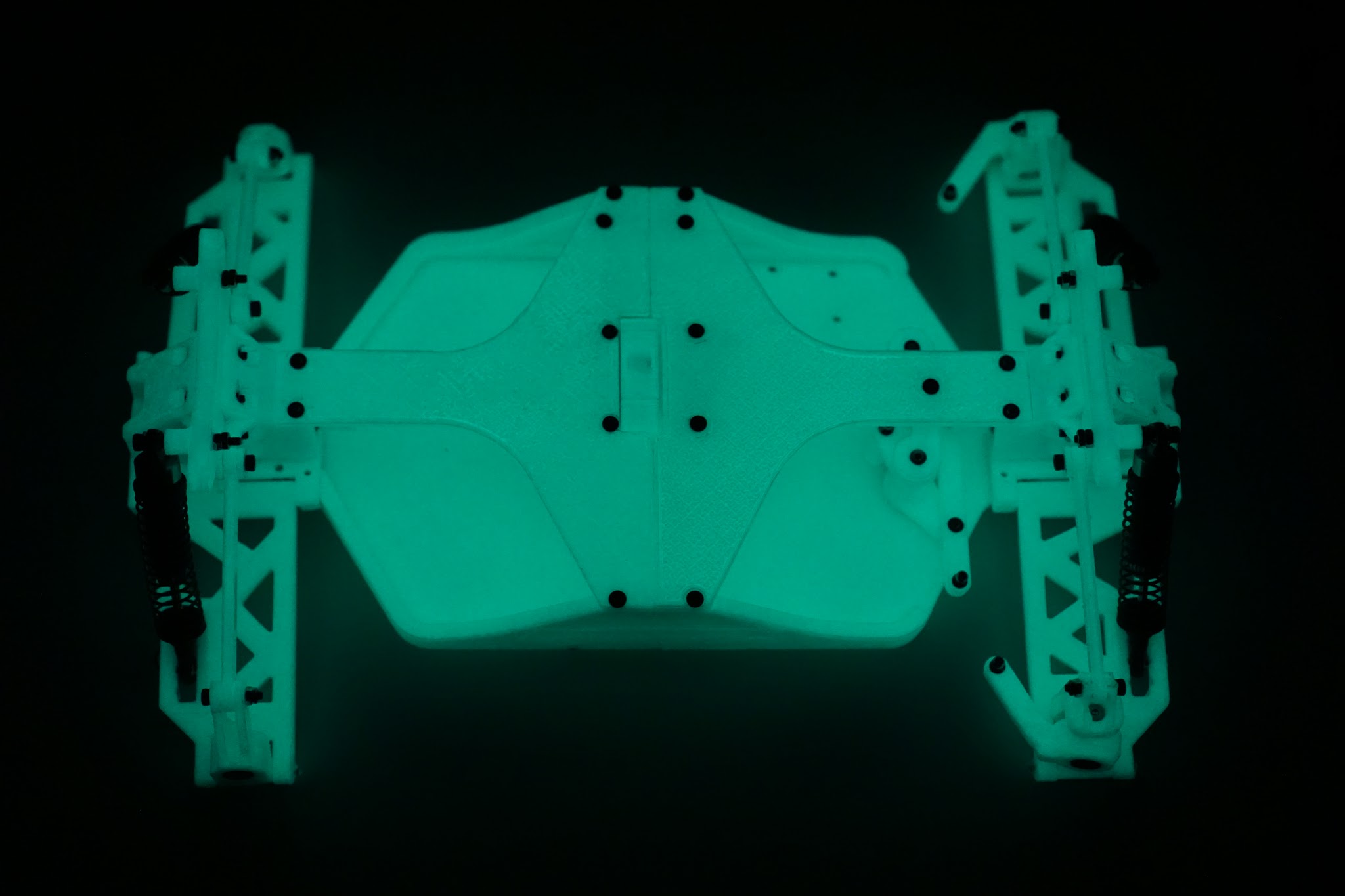 My glowing car is nearly complete! I’m redesigning the hubs to accept some Redcat racing stub axles, which use a 5x10x4 bearing and a 10x15x4 bearing, so it’ll be ready once those are finished and I’ve installed the rest of the parts. I’ll also upload my redesigned hubs, so hopefully that will help any American builders who haven’t been able to track down the drive shafts listed in the original parts list. So many cool projects here!