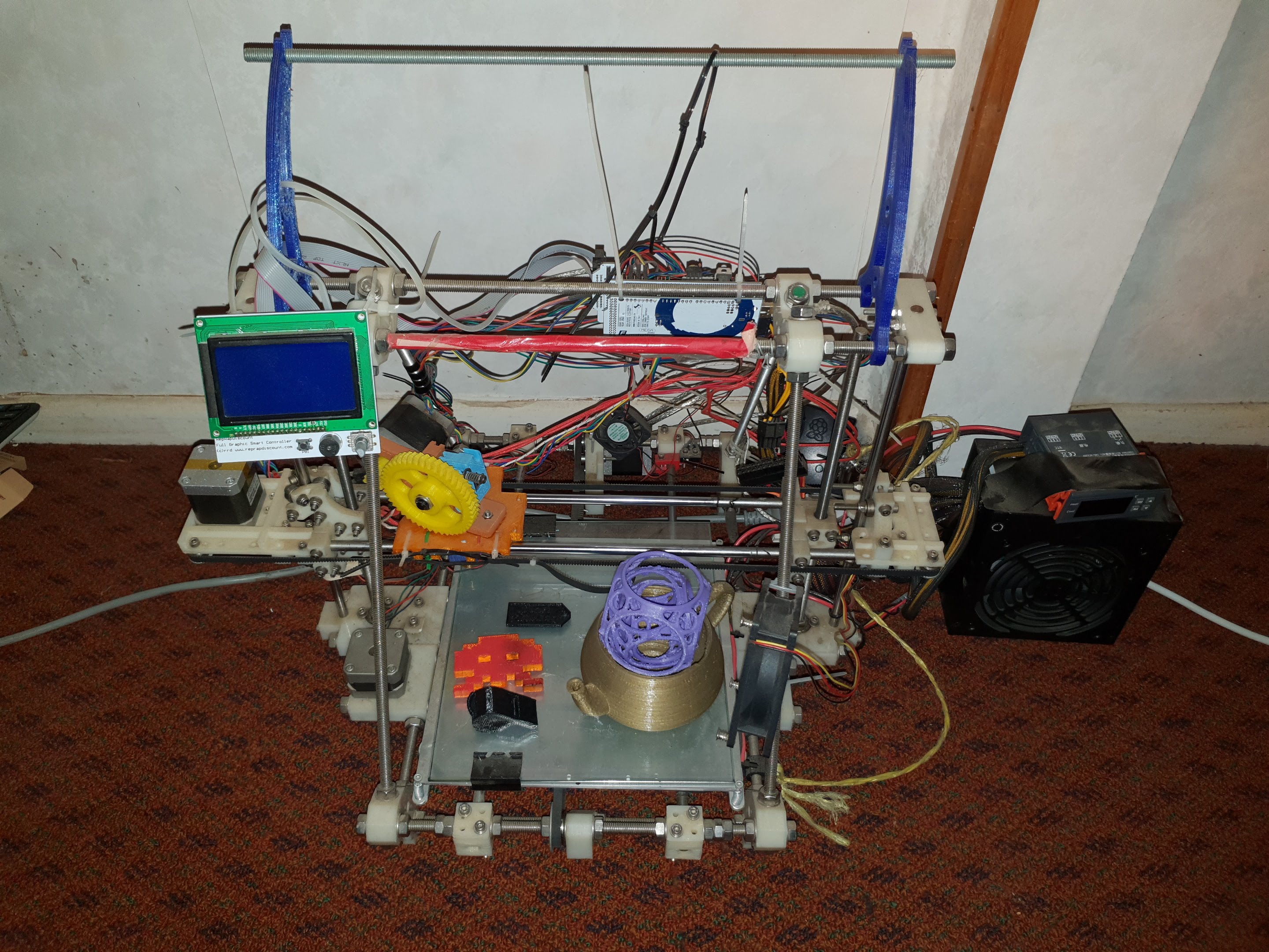 This was my first 3d printer, and it was the bleeding edge Sells Mendel variant.