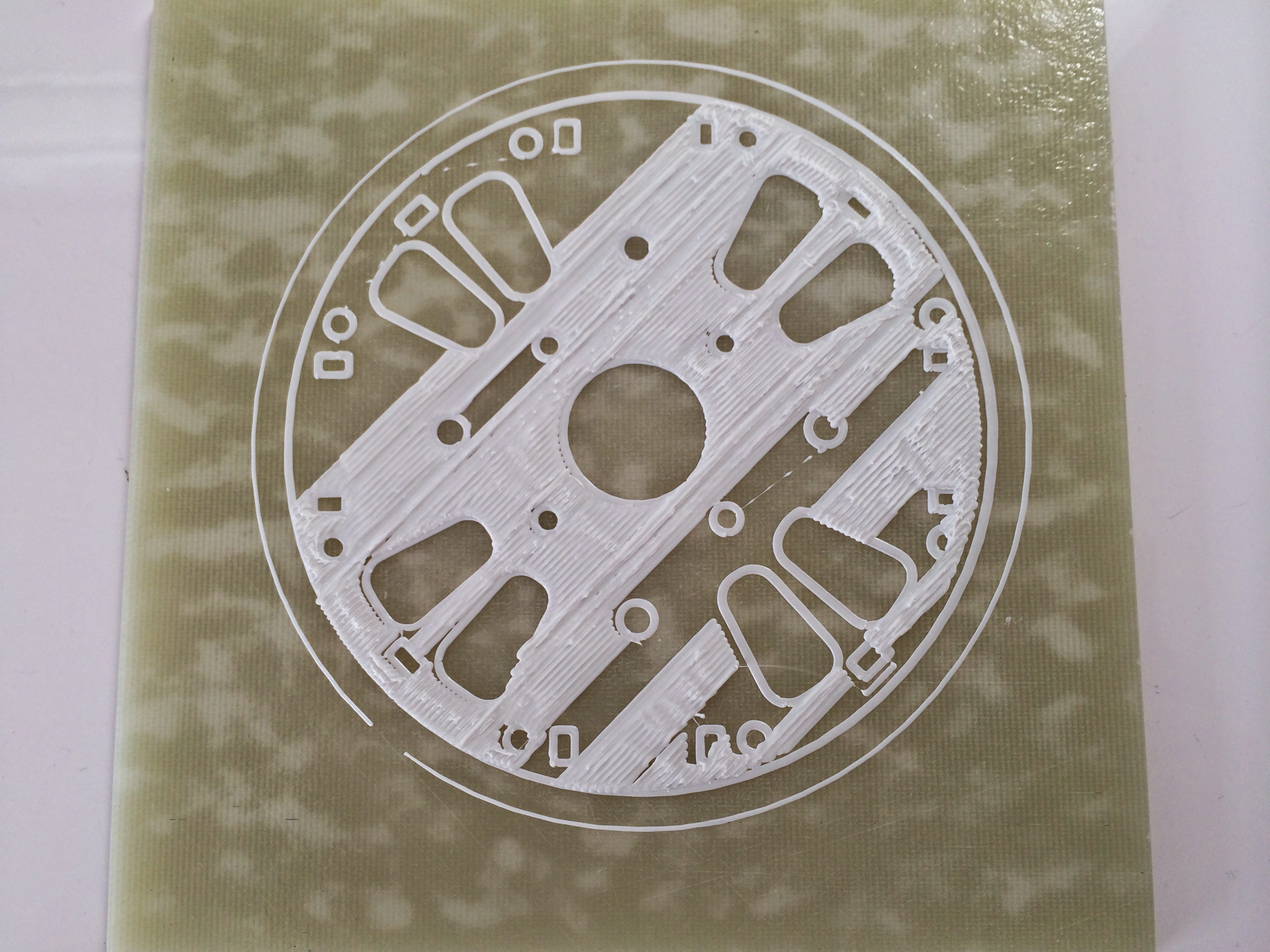 The printer is controlled by a RAMPS board with Marlin firmware and has the following settings (these are from after I tuned things down quite a bit speed wise - to see if the mass of the carriage was the reson it failed on rapid changes in speed/direction): #define BAUDRATE 115200 #define DEFAULT_AXIS_STEPS_PER_UNIT {106.76, 106.76, 800, 52.45} #define DEFAULT_MAX_FEEDRATE {215, 215, 5, 25} #define DEFAULT_MAX_ACCELERATION {500,500,100,10000} #define DEFAULT_ACCELERATION 2000 #define DEFAULT_RETRACT_ACCELERATION 2000 #define DEFAULT_XYJERK 5.0 #define DEFAULT_ZJERK 0.4 #define DEFAULT_EJERK 5.0