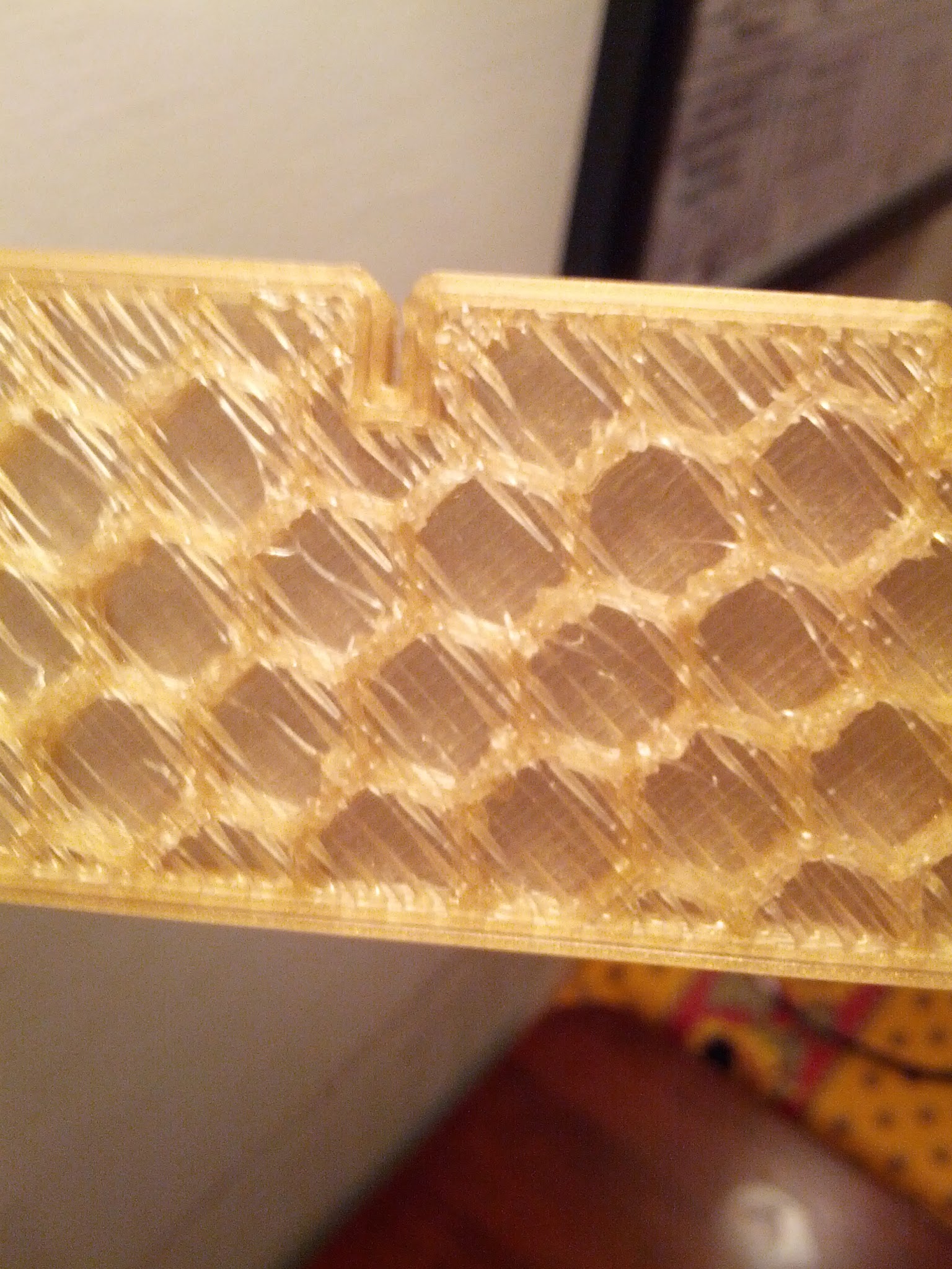 The problem is most visible when doing just regular old line or rectilinear infill. Occasionally, the printhead will lay down a line of plastic and it won’t stay put to the previous layer - it will instead kind of skip along and create a series of arcs pointing upwards, sticking at the point where the lower level crossed over.