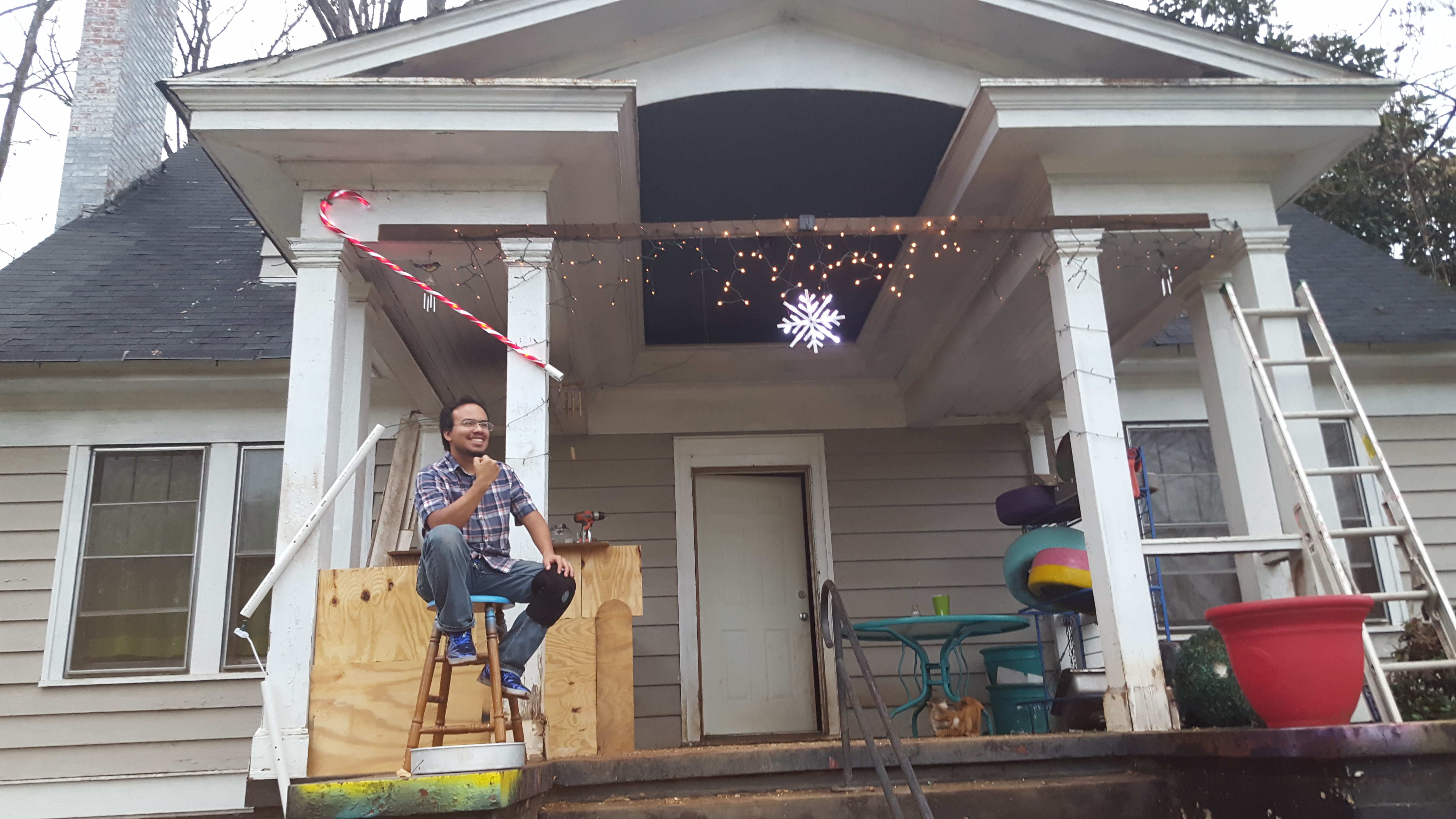 My snowflake works! Due to a low budget and a fear of heights i was limited to this amount of lights. Also i cant decorate the yard because my dogs eat everything. Even power cords -_-