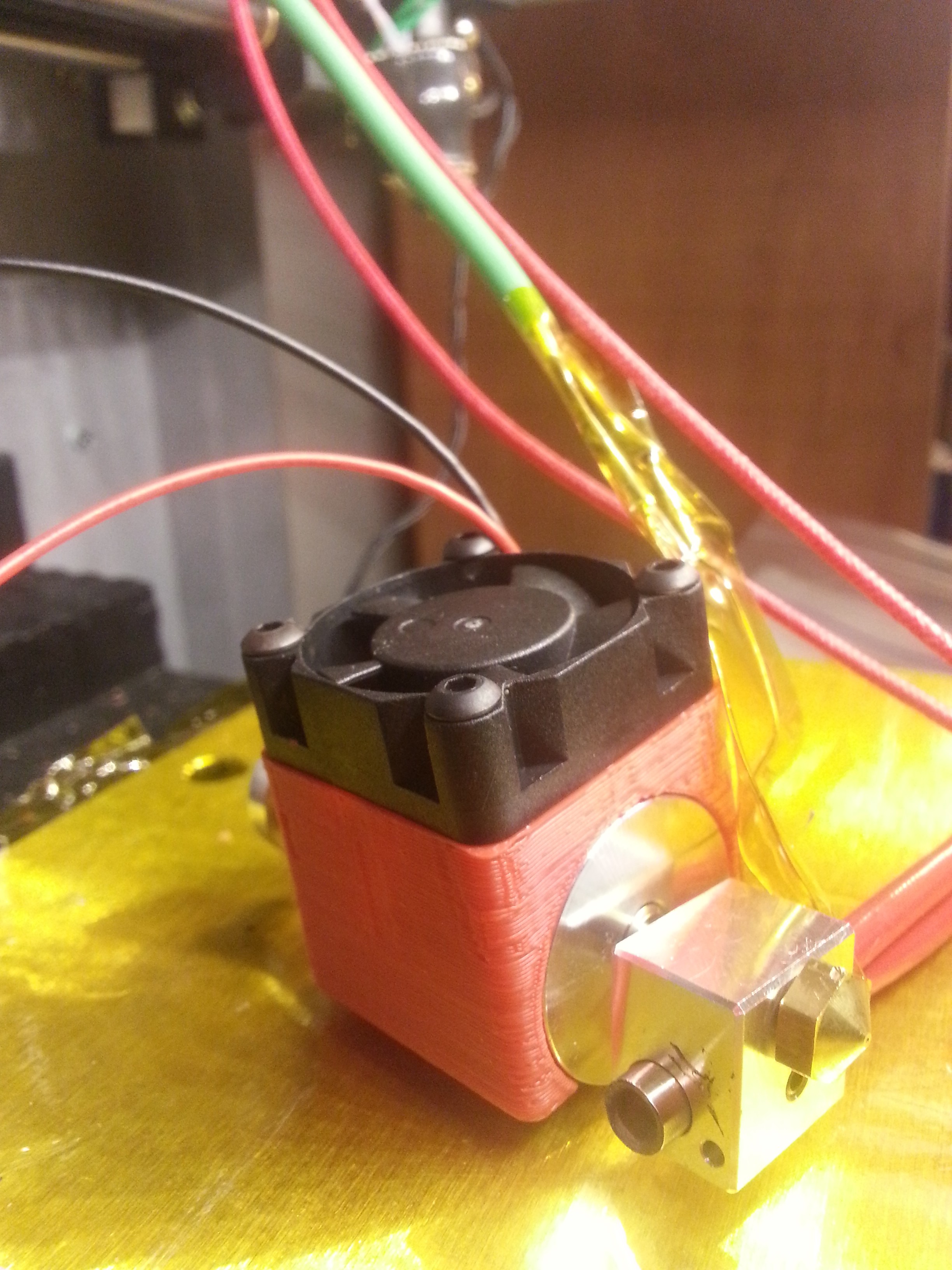 My stunningly beautiful E3d-online.com all metal hot end, assembled, mostly plugged in, and run up to 300c for a quick test.