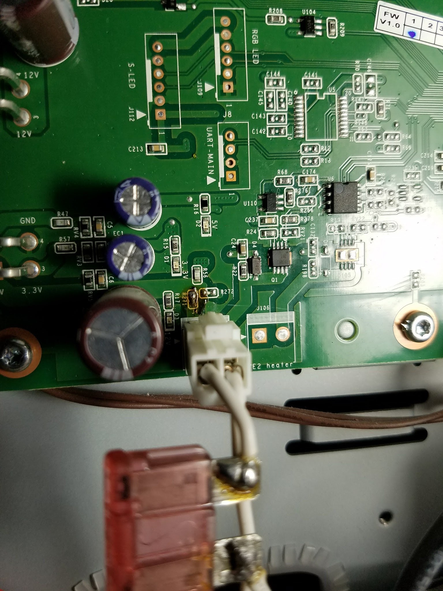 I hope you unplugged the E1 heater plug before welding the fuse in. Otherwise, you may have caused the board to fry next to the plug.