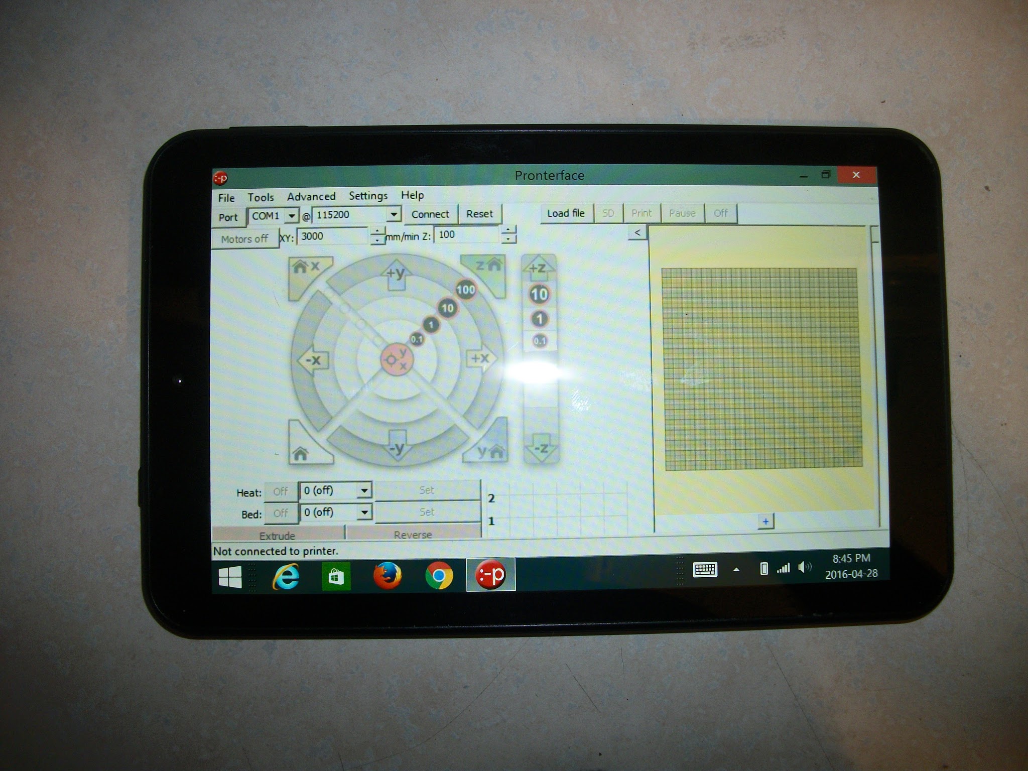 My Trio 8" Windows tablet. Going to use it as a touchscreen interface for my K40 and LE400 lasers. Also posted a pic of a neat little Z axis that was 3d printed and only cost $20 including the stepper motor and 8mm rails.