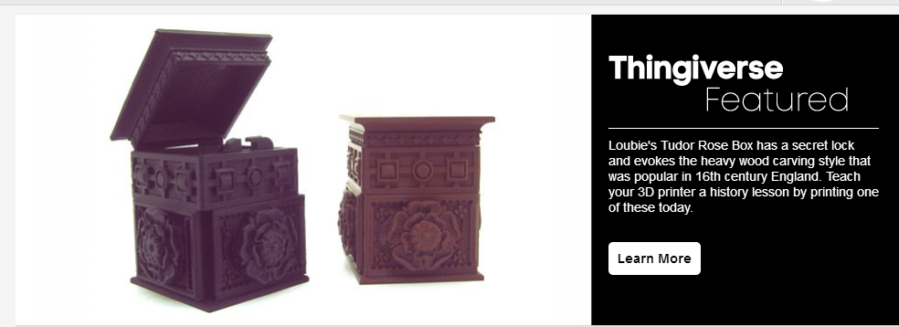 My Tudor Rose box has been featured: on Thingiverse. It’s a great way to find out how printable a model is for the general populace:-)