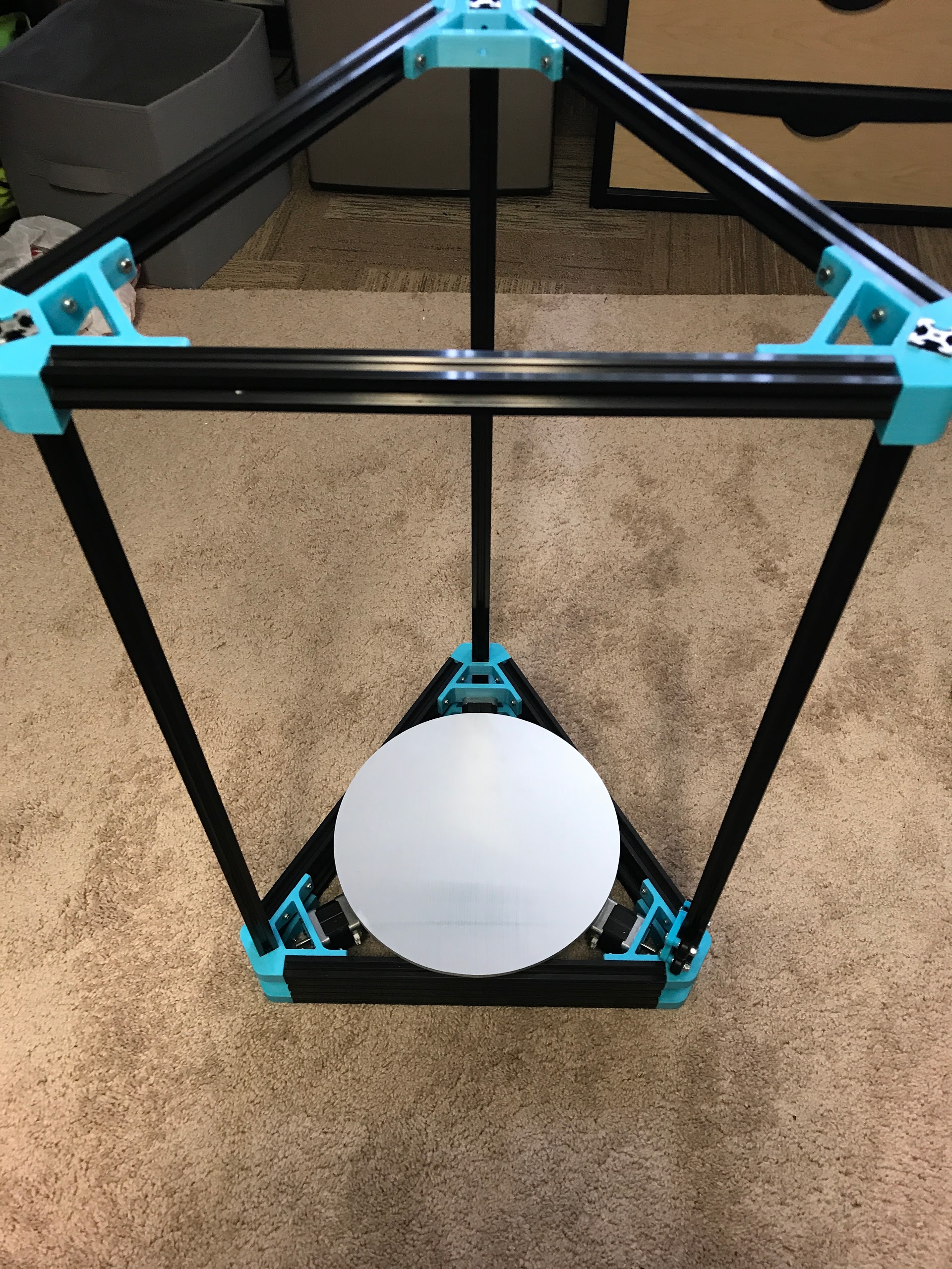 Nearing completion on the first delta (finally!!). I got the MIC6 waterjetted to 300mm round and slapped a nice 24V 250W kapton heater on the bottom. My issue is figuring out how to attach it at this point. It was a definite afterthought when ordering the aluminum as there was literally zero edge to make tabs for bolt holes.