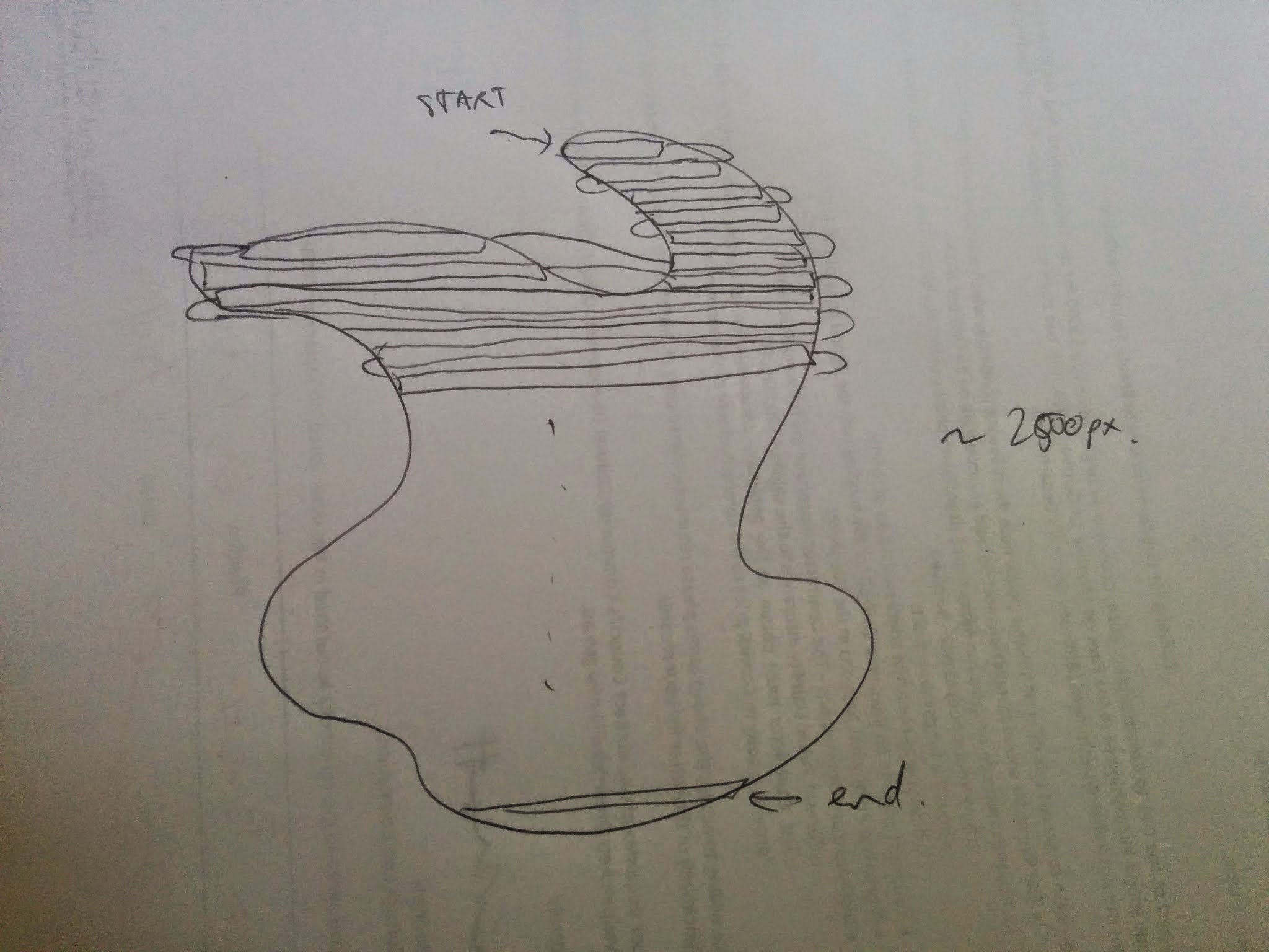 So I have 2D array of abstract shape like the one pictured below, I actually have no idea what it’ll look like yet but that is just an example. It will have approximately ~2500 or 3000 pixels, and I would ideally like to address all of these with one (potentially two if need be) teensy 3.1s. I have drawn the strips running horizontally with wires connecting in between where there is an air-gap, and I didn’t draw in all the strips but hopefully that makes sense…