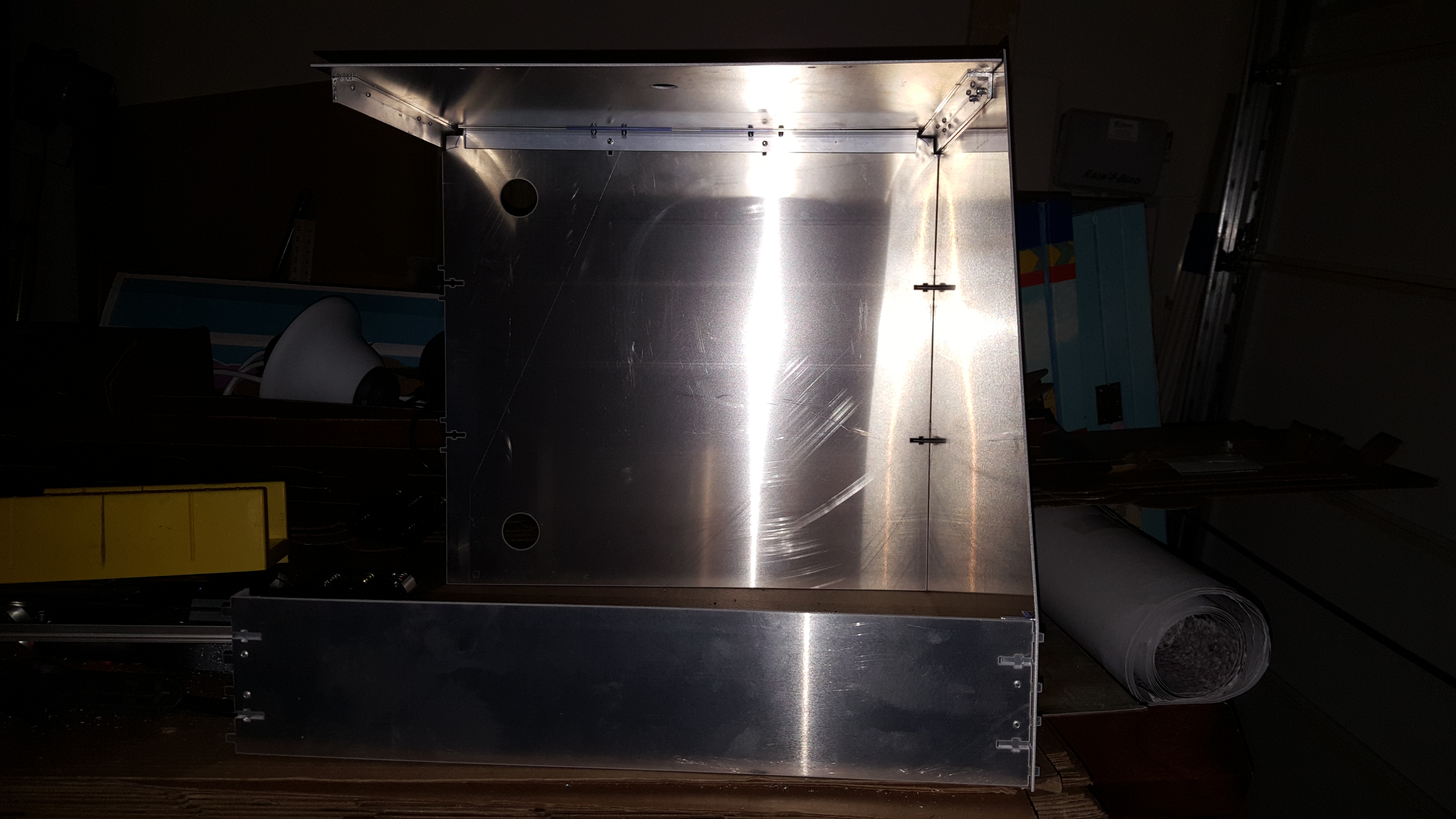 New extruder motor from supplies with matching wire colors…check…push-fit connector so I don’t have to take the whole thing apart to get to the motherboard…check…new fan shroud printed in PLA at 60% infill so it doesn’t break as easily as the original…check…new sheet of BuiildTak…check…all metal enclosure with lid and polycarbonate view window…almost done…