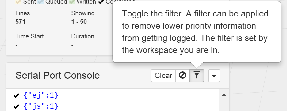 New filter in Serial Port Console on by default to reduce the amount of information that comes back at you. Toggle it off to see all data coming back. @Alex_Wilkinson gets the credit for the suggestion.