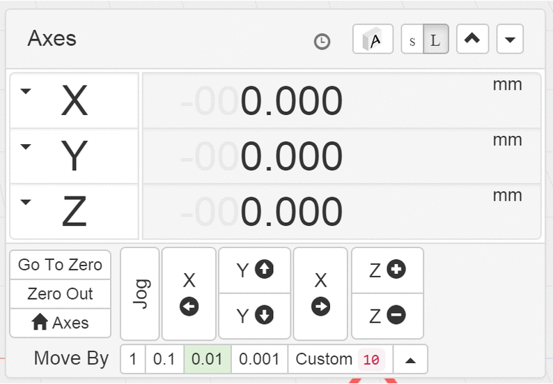 New “move by” custom entry in axes widget. Accelerators work on it too. New “alt” key accelerator on Mac. New icon toggle for A axis. Degrees show now too. Enjoy.