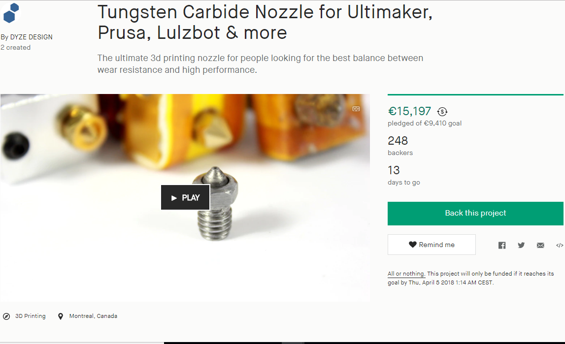 New tungsten nozzle on kickstarter, this time is tungsten carbide instead tungsten alloy as ddd material one (is it still existing ddd material?).