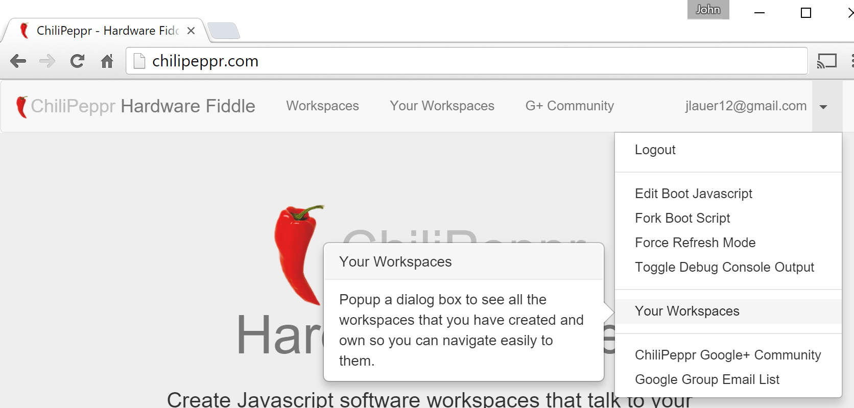 New "Your Workspaces" dialog box. Links to G+ and Google Group too.