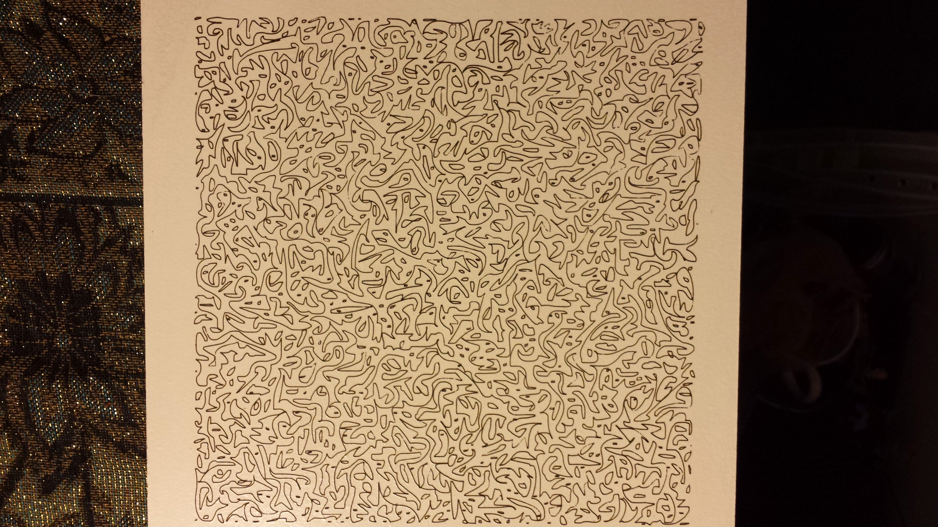 CAM process was ‘Ready’ reaction diffusion playground created a screenshot of some math, bitmap traced in Inkscape and simplified once, then gcode created from a ‘laserengraver’ plugin for Inkscape."