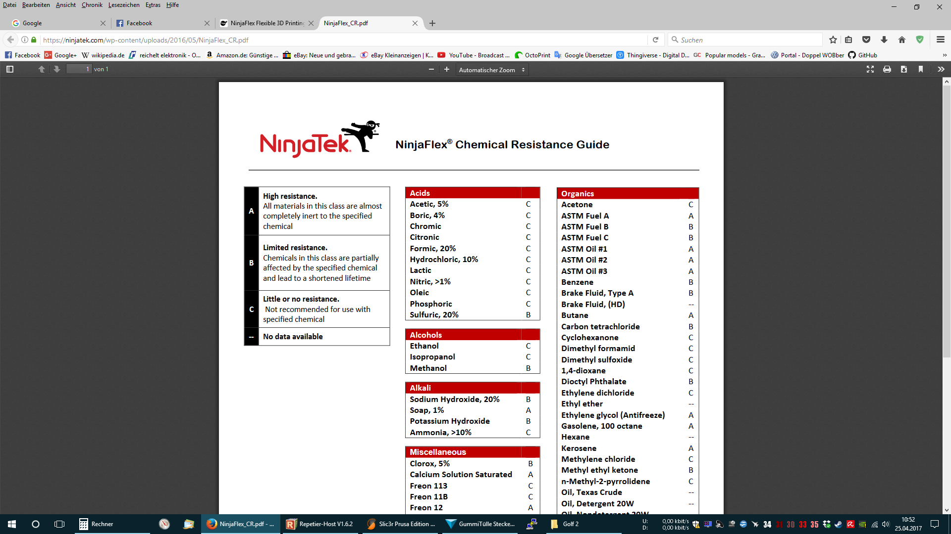 Nice that NinjaFlex has a table for chemical resistance. Need it for cars a lot so this is the sht