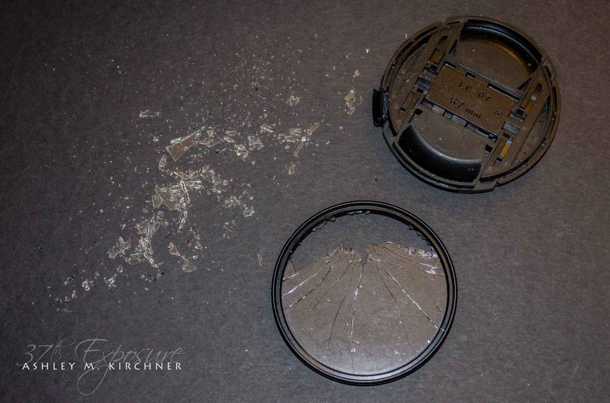 Nothing related to FastLED or LEDs in general, but tonight I’m thanking my father who taught me, no, more like drilled it into my head, to always, ALWAYS, put a UV filter on my lenses, and a cap. This happened tonight. These two pieces were on a $600 lens … lens is perfectly fine by the way. I can keep taking pictures of lights.
