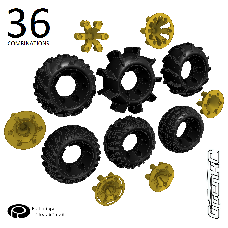 Now 36 combinations of #3dprinted #RC tires & rims that I designed for the #OpenRC #Truggy project: Set of wheels for OpenRC Truggy by Palmiga - Thingiverse