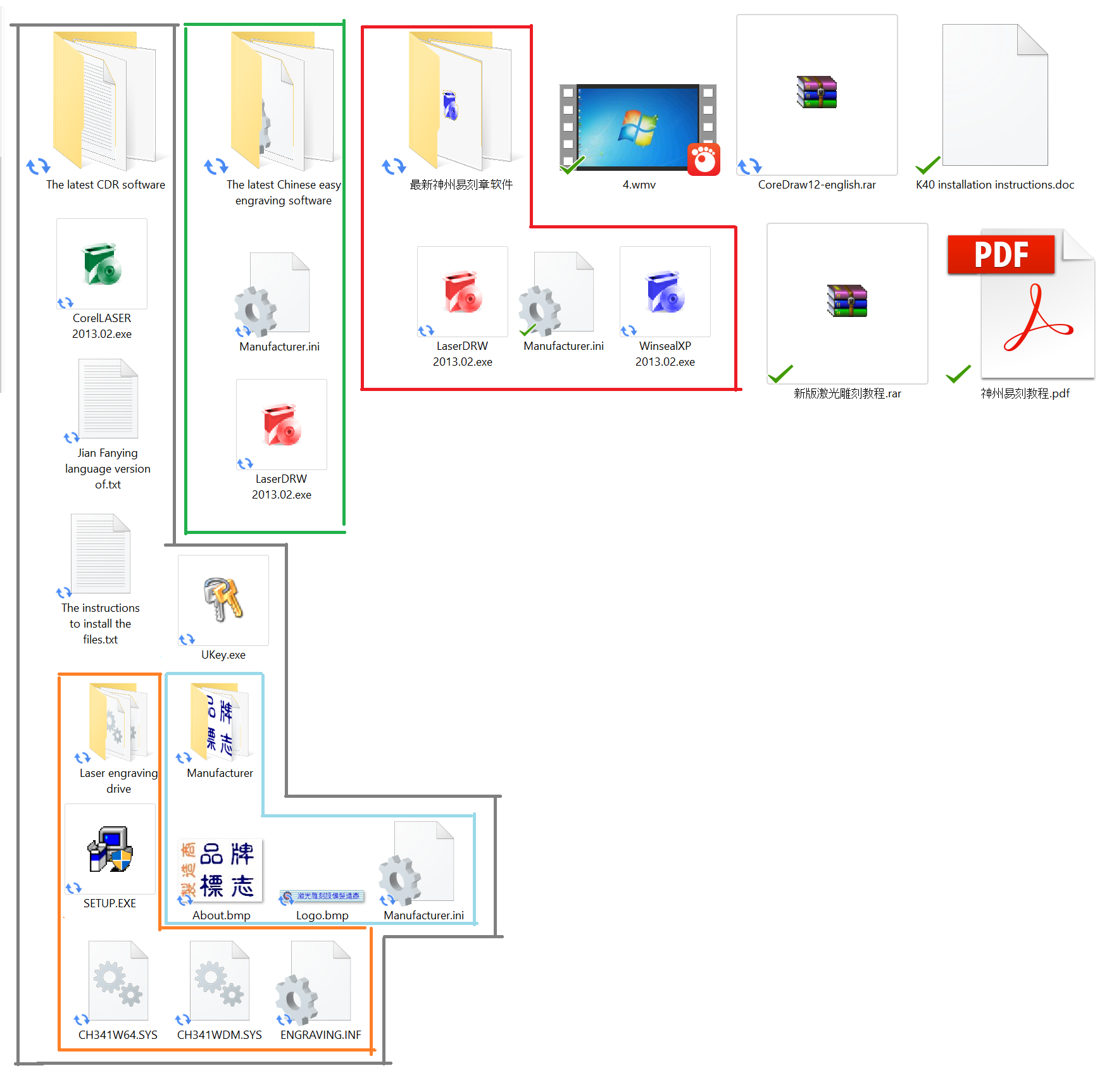 @Martin_Larsen Should be good to go now. Just 1 file now as .rar format. Hope it works for you. By the way, did you get one of the USB hardware-key sticks? It should look like the gold one here http://appliedabsurdity.org/wp/wp-content/uploads/2015/01/Laser-035.jpg that says Lihuiyu Studio Labs on it.