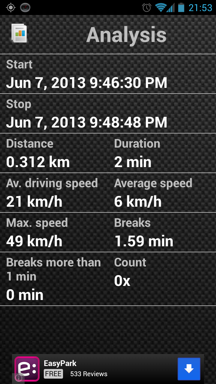 I put my phone in the car and used this GPS app to record the speed. Then i took a screenshot of the result… 49km/h…