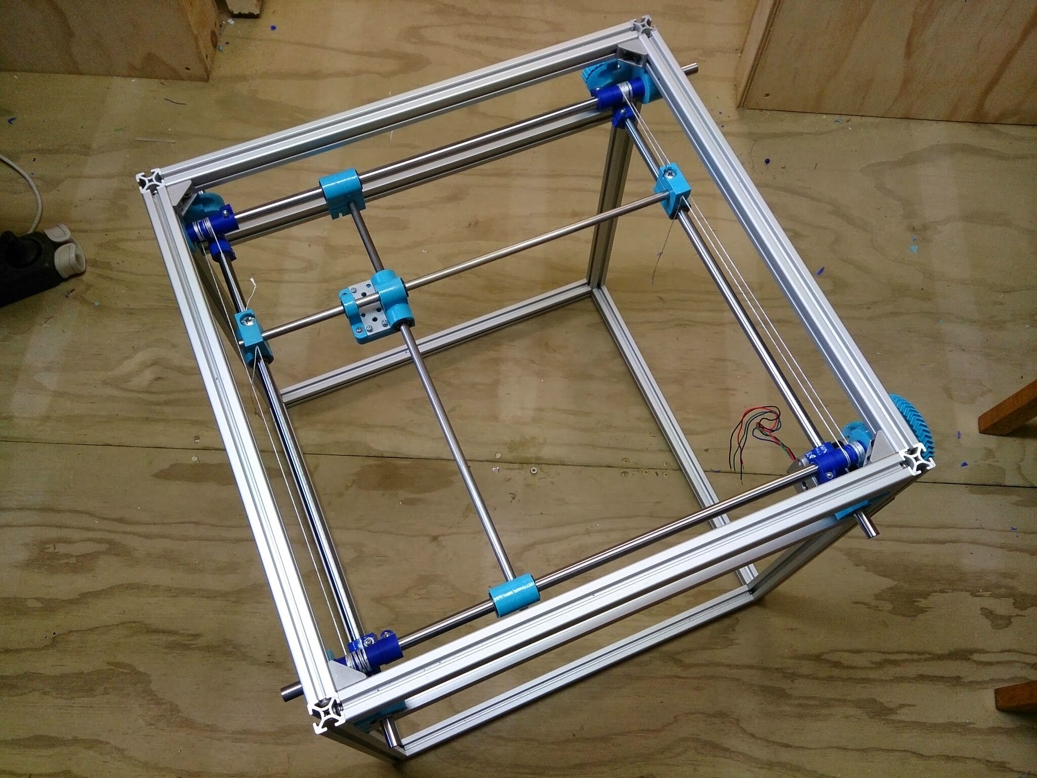 @Shauki Actually a very simple design. The unique part count is very low and the drive mechanism is elegant (Stolen from Ultimaker). I’m also only using 1 stepper per axis, unlike a lot of bots that use 2 for Z.