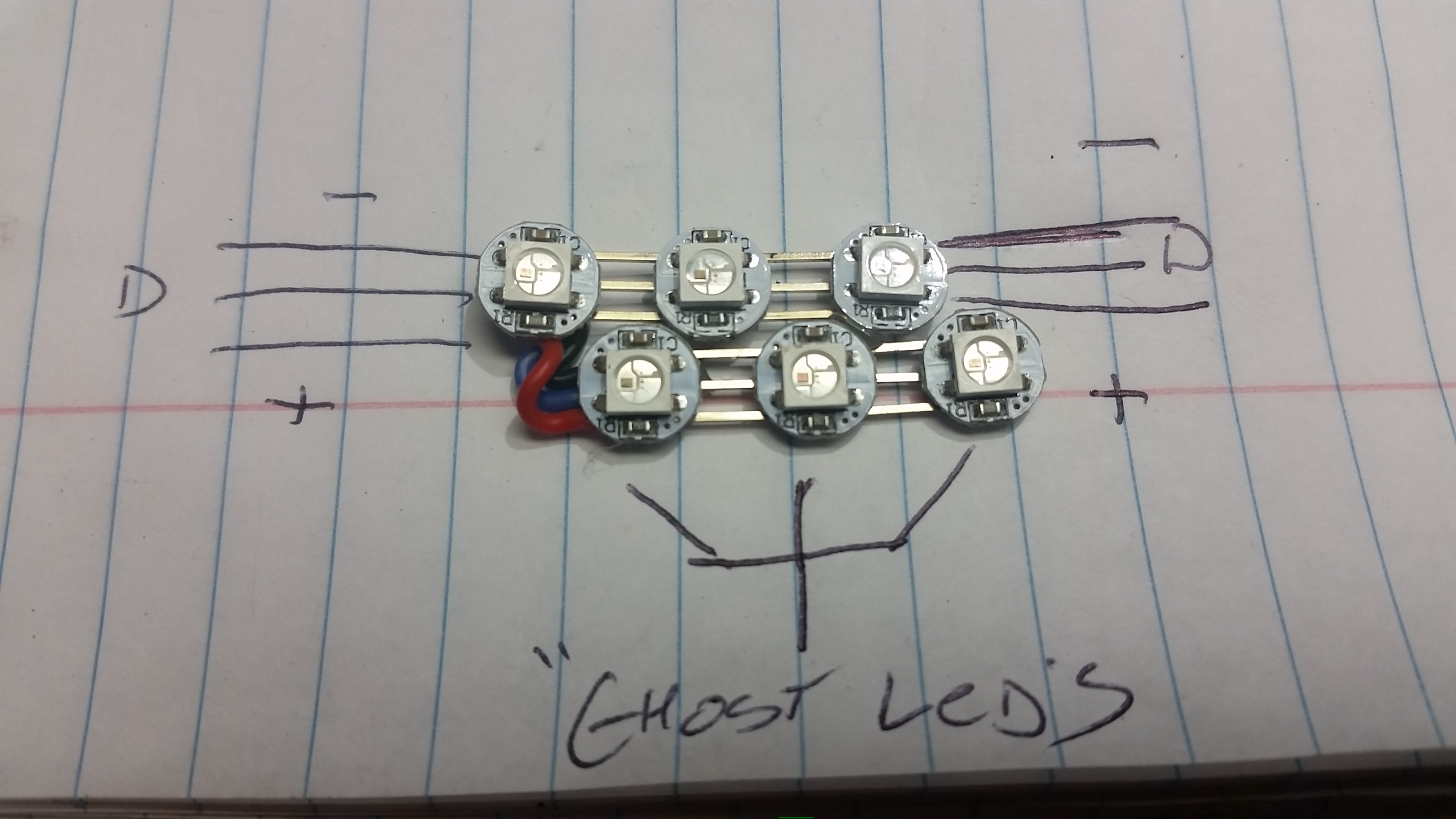 How are your “ghost LEDs” wired up with that top row? Do you have a picture of the back?